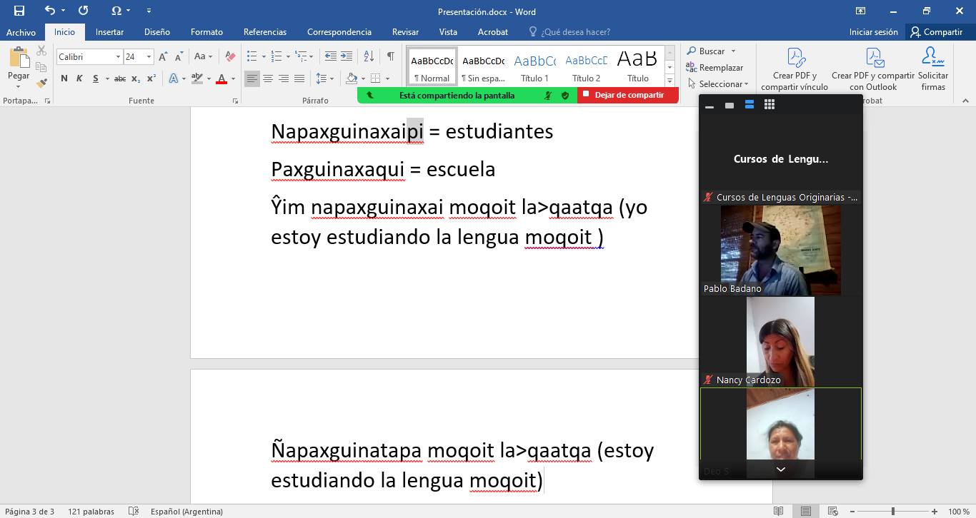 El viernes 22 de marzo comenzaron las clases de Ava Ñe’ê (guaraní) a cargo de la mbo’ehára Verónica Gómez con la colaboración de Yéssica Rodríguez, Noemí Ocampos y Liliana Bernal. Al día siguiente, sábado 23 de marzo, fue el puntapie de moqoit la>qaatqa con la coordinación de la napaxguinataxanaxa Deolinda Salteño, quien se desempeña como docente en la Escuela Primaria Nº418 ‘Niño Mocoví’ de la Comunidad El Pastoril del sur chaqueño.