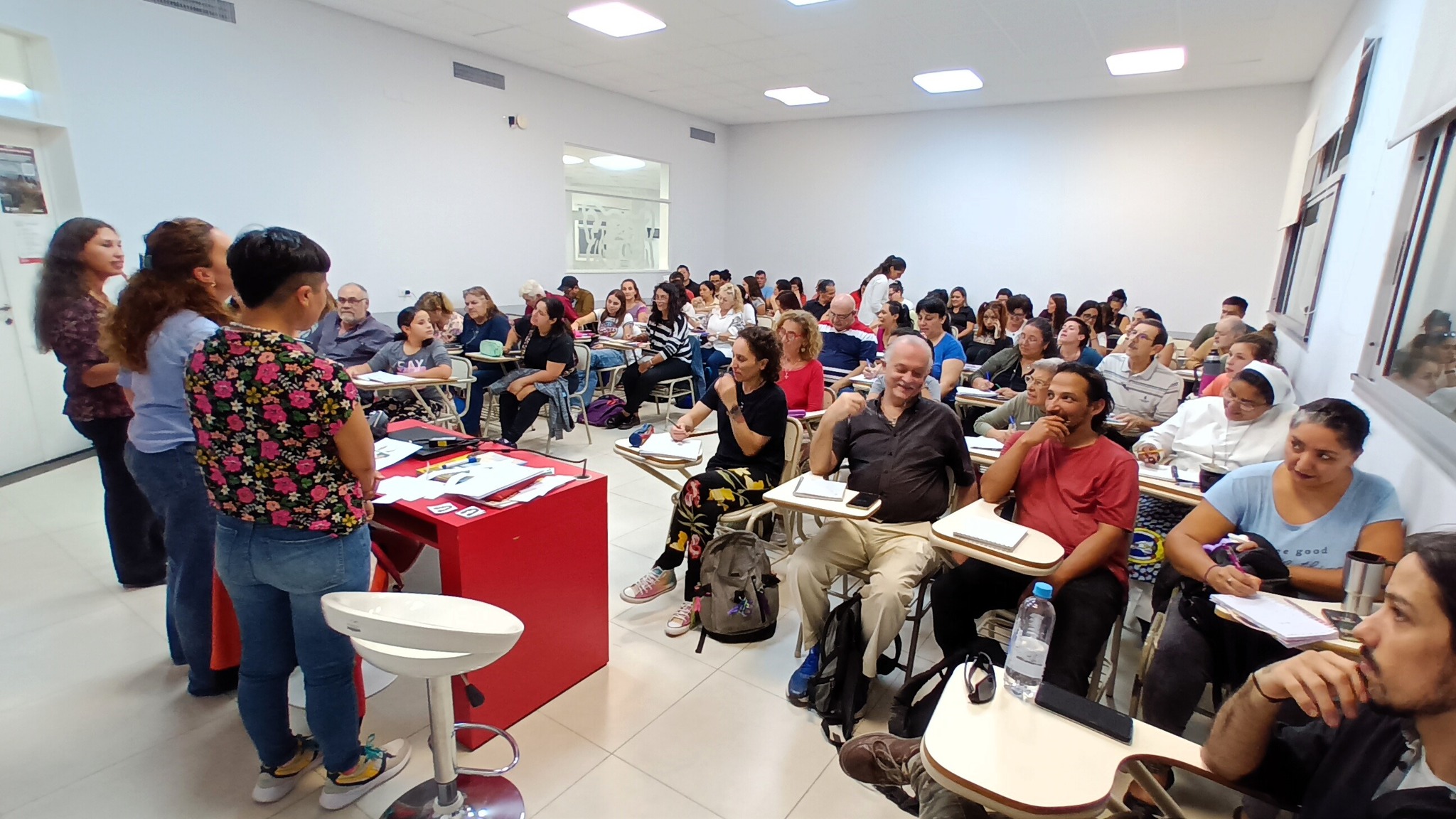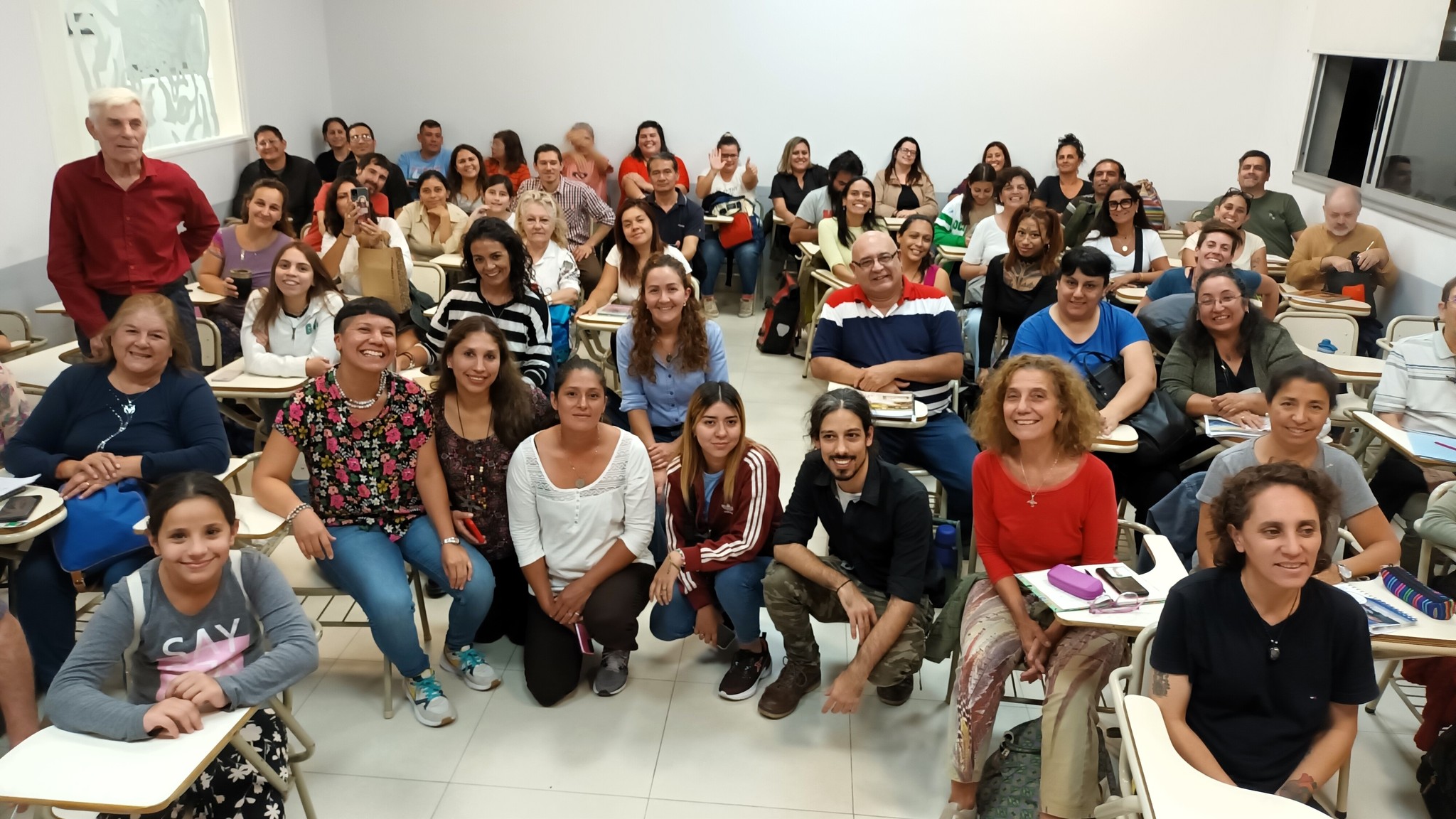 Con un aula repleta con 70 personas, el viernes 19 de abril fue la primera clase presencial del curso de Ava Ñe’ê (guaraní) del Municipio de Tigre, a cargo de la mbo’ehára Verónica Gómez y con la colaboración de Yéssica Rodríguez, Noemí Ocampos y Liliana Bernal.