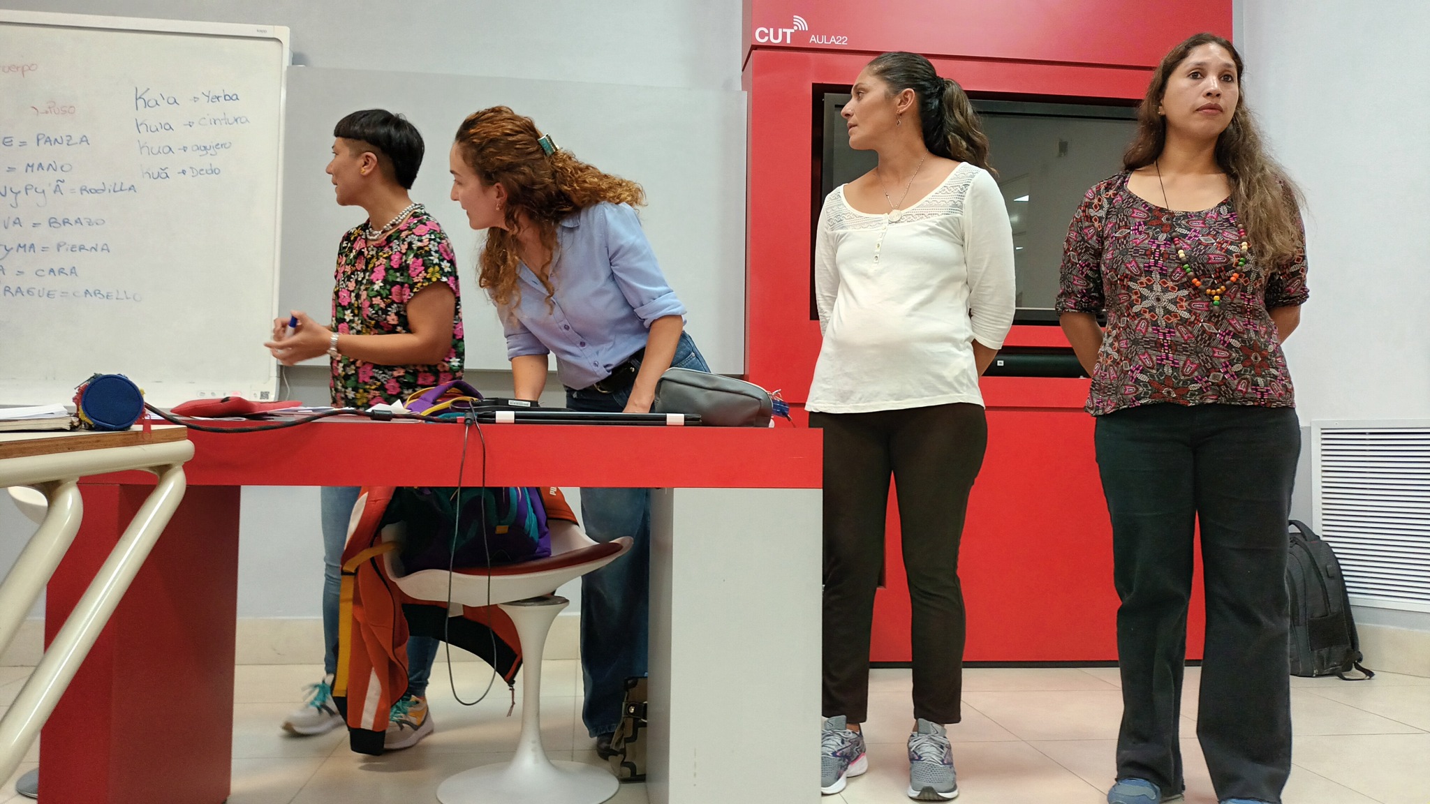 «Llegar y ver a decenas de personas amontonadas para entrar al aula nos movilizó. El aula estaba repleta de gente entusiasmada por aprender un idioma originario y justo nos tocó hacerla en una fecha significativa, el 19 de abril, día de los pueblos originarios, eso nos dio pie para seguir poniendo énfasis en la importancia de nuestras raíces ancestrales”, expresó Verónica Gómez, mbo’ehára (profesora) y vecina de Quilmes en el sur del Gran Buenos Aires.