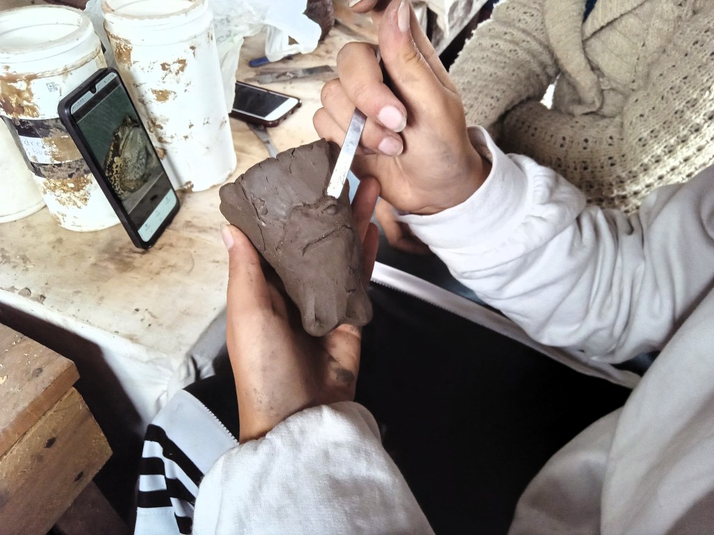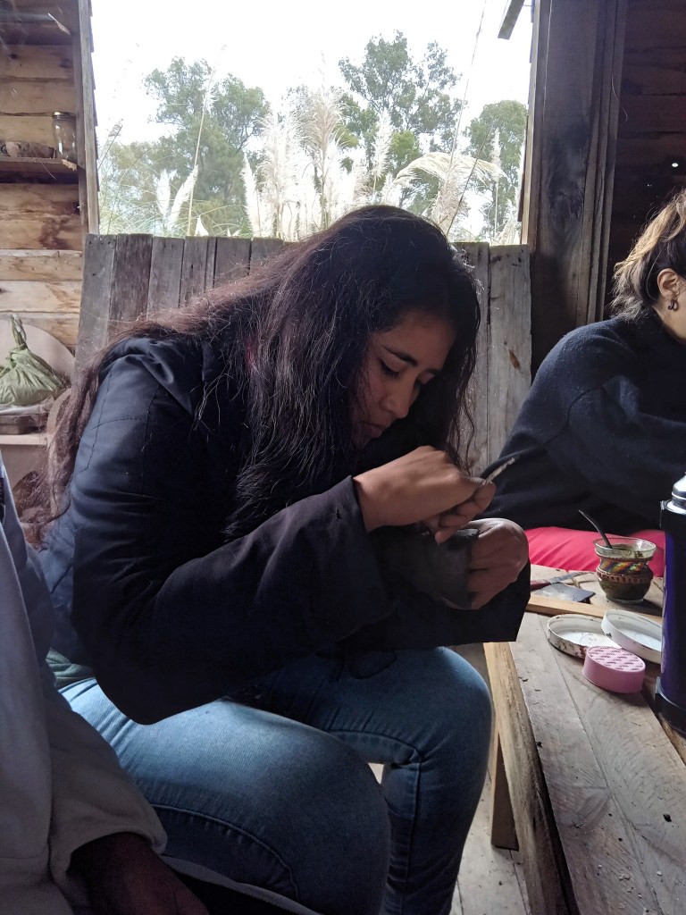 «Continuamos creando una sahumadora para acompañar las ceremonias del territorio. En cada encuentro se va agrandando el círculo, lo que nos da mucha alegría y entusiasmo», expresaron Julieta Medina y Florencia Borowski, ceramistas de los talleres Amaru y Anatiri de Escobar, quienes guían esta capacitación interna desde el invierno de 2022, hace casi dos años.