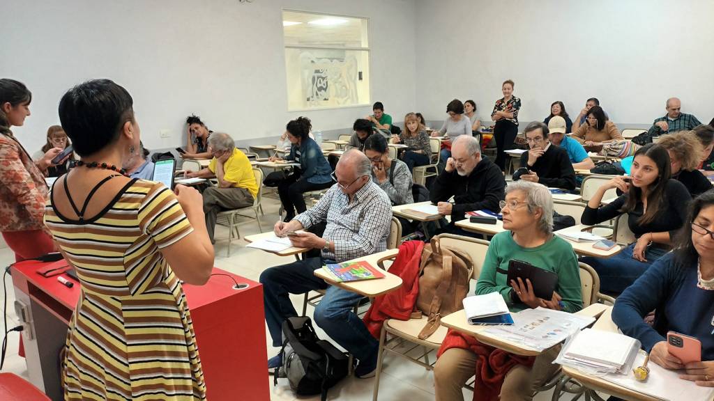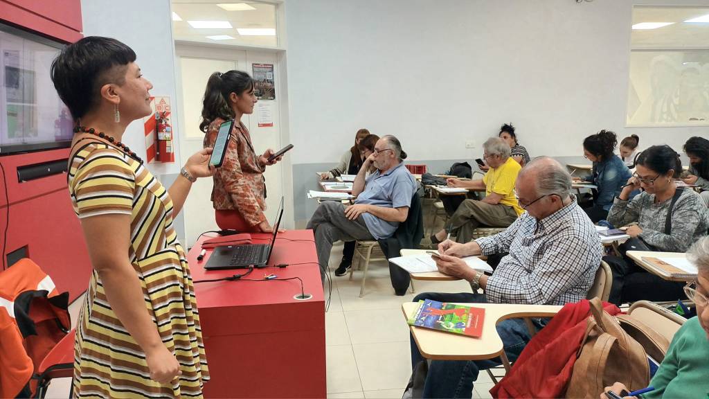 «Mi mamá se preguntaba porqué me gustaba tanto escuchar cantos indios. Hoy estoy contenta de aprender un poquito de guaraní, me resulta complicado pero las clases ayudan un montón. Y las presenciales me facilita las pronunciación. Las canciones hacen más fácil el aprendizaje. Gracias a lxs profes, a lxs compas y al CUT que nos habilita el espacio”, manifestó la vecina de Ricardo Rojas (Tigre).
