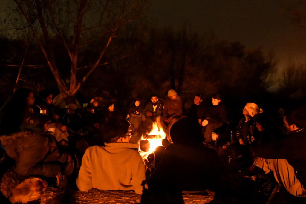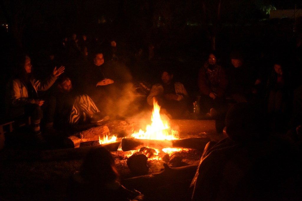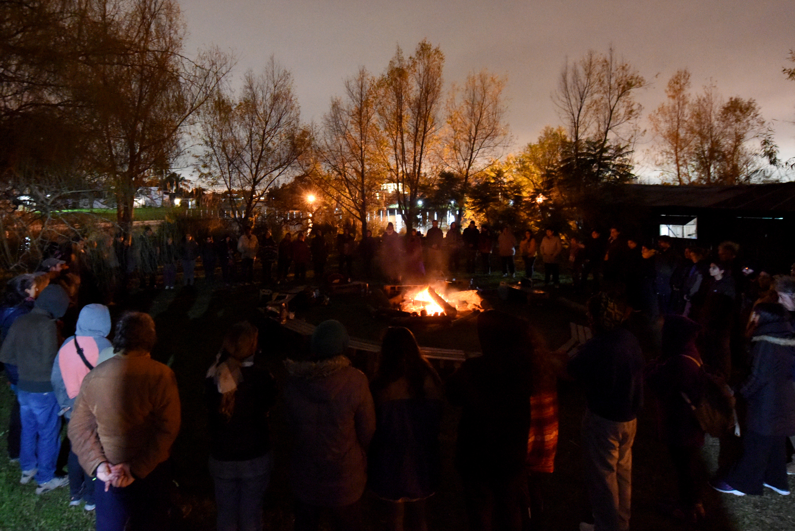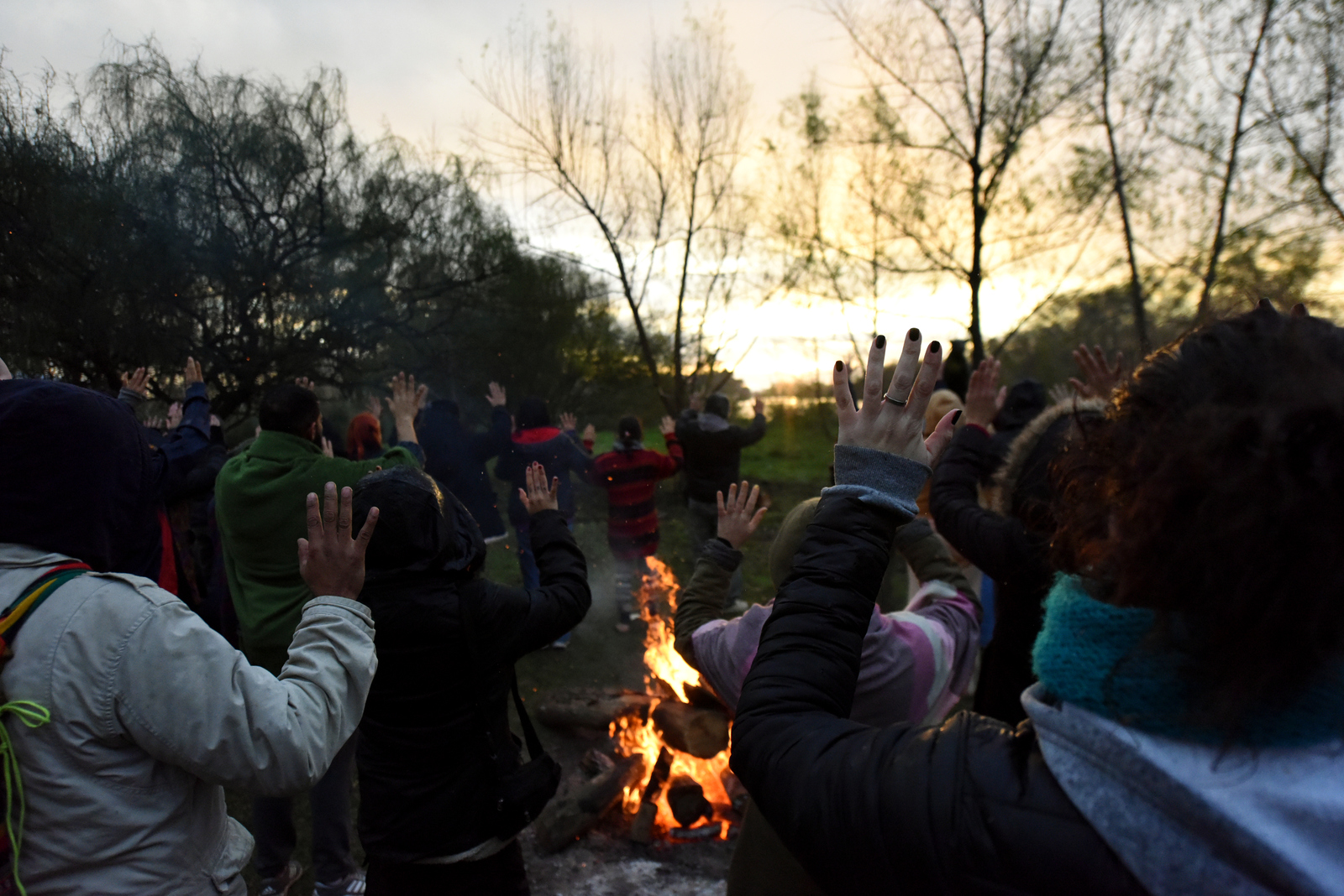 Después de disfrutar un guiso de lentejas, llegó la medianoche y se formó un gran círculo donde las personas de la comunidad de Punta Querandí dieron la bienvenida, explicaron las pautas de la vigilia y compartieron un resumen de los últimos acontecimientos. Luego de esta presentación, la convocatoria se distribuyó en tres fogones donde la palabra circuló con mucha fluidez a partir de distintas trayectorias de vida, oficios y compromisos.