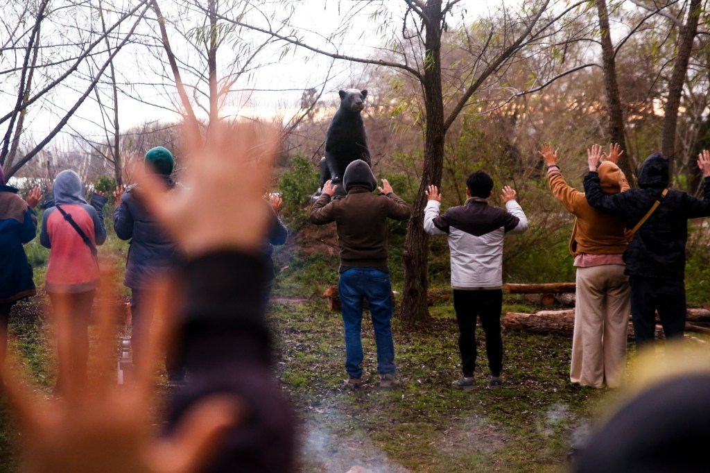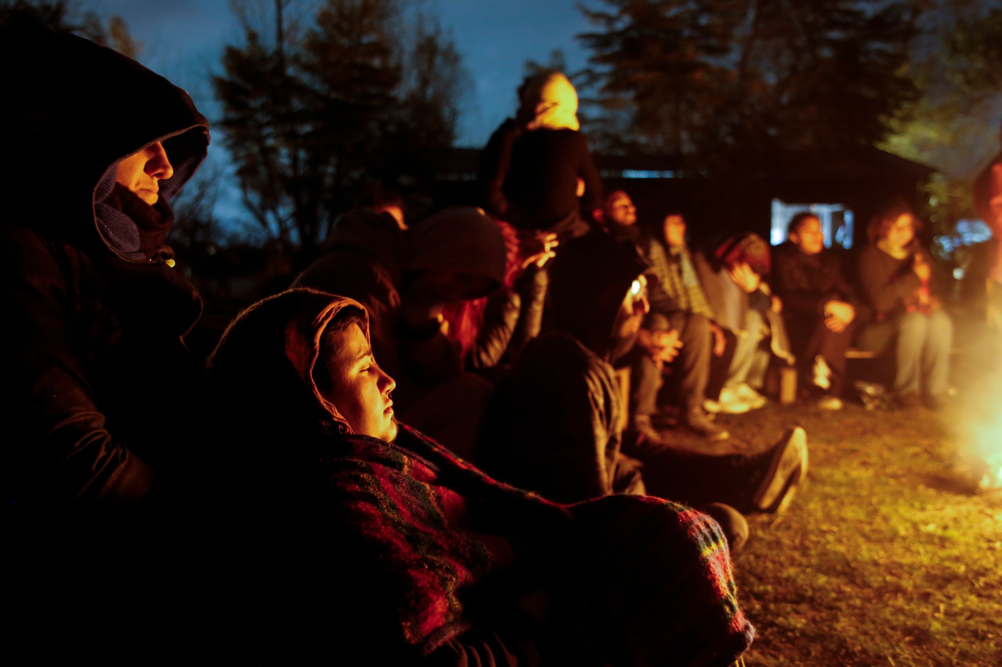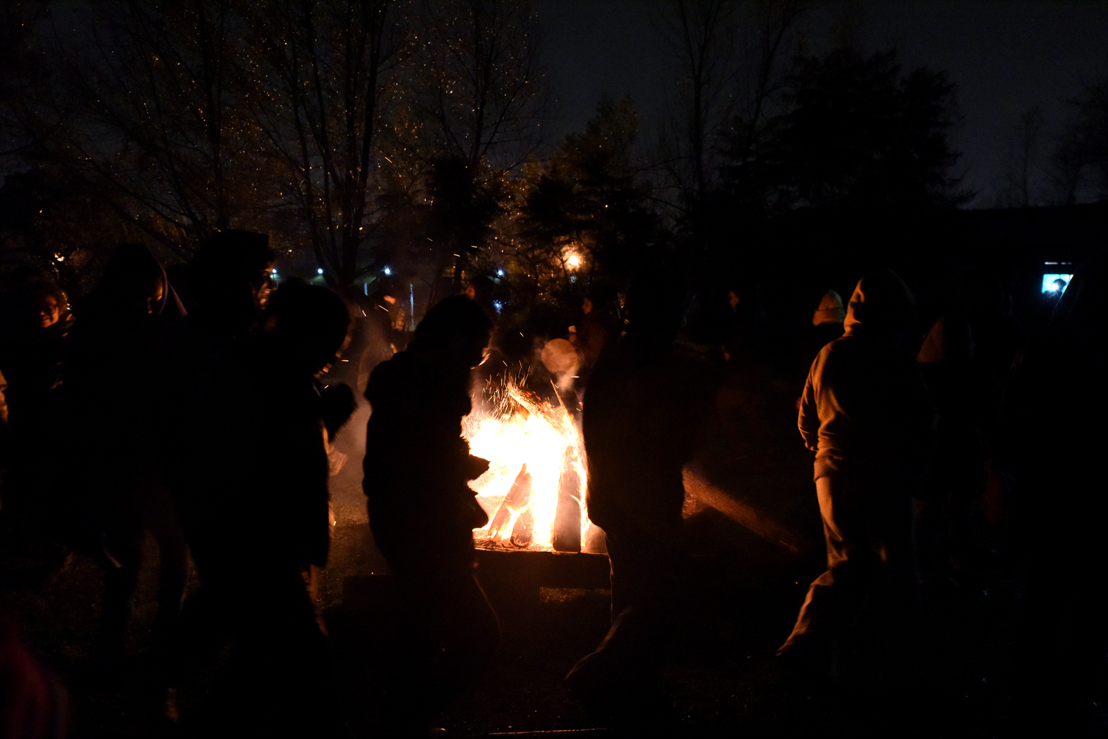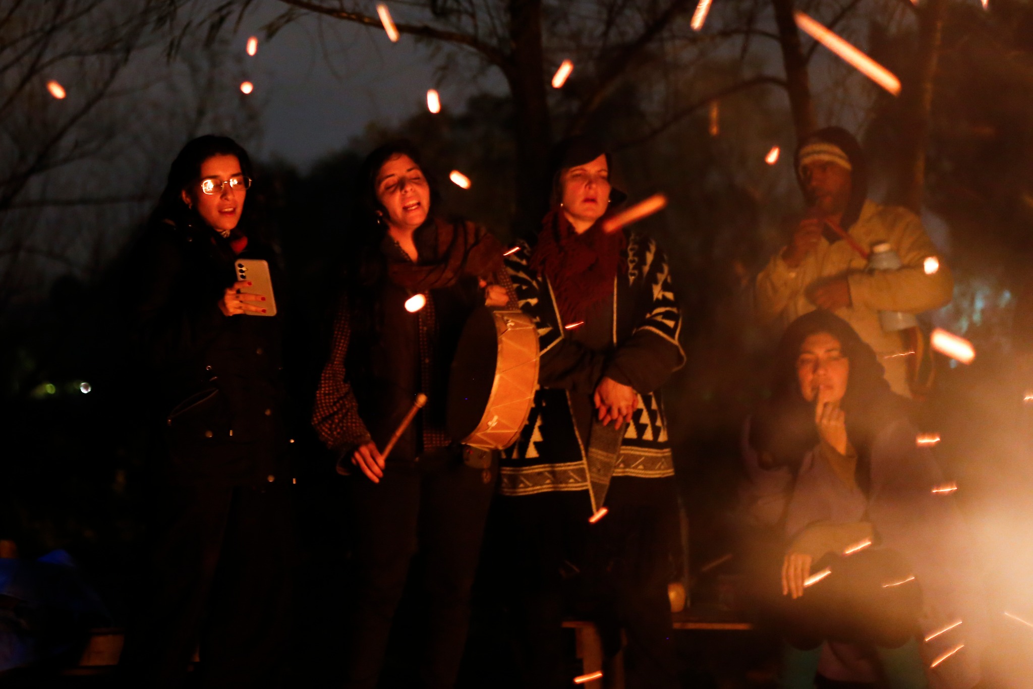 A las 5 de la mañana nos agrupamos en un fogón central con el acompañamiento de distintas músicas y melodías. Sobrellevamos las lloviznas por casi dos horas hasta que, antes de la salida del Sol, hicimos nuevamente una gran ronda.