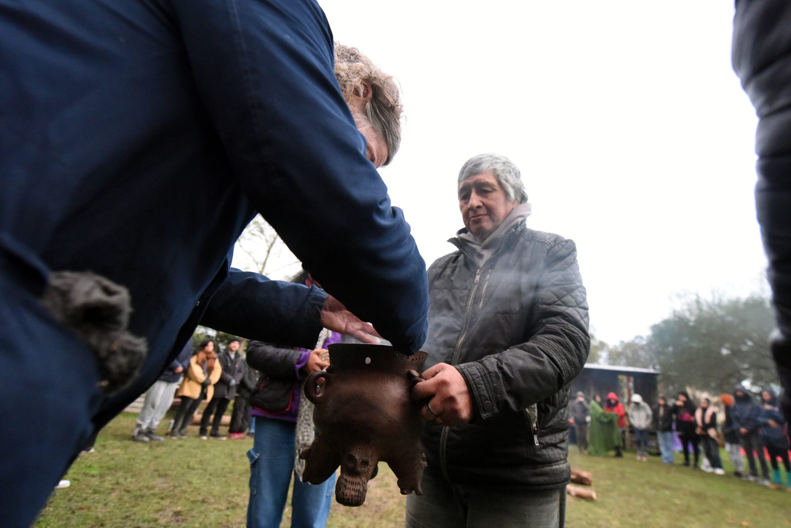 La gran novedad fue el uso de una nueva sahumadora: la primero pensada, diseñada y elaborada con las propias manos de los integrantes de Punta Querandí y con materiales del mismo territorio, una creación colectiva fruto de los talleres internos de cerámica que se llevan a cabo una vez por mes en el galpón de fortalecimiento de oficios tradicionales de la comunidad.