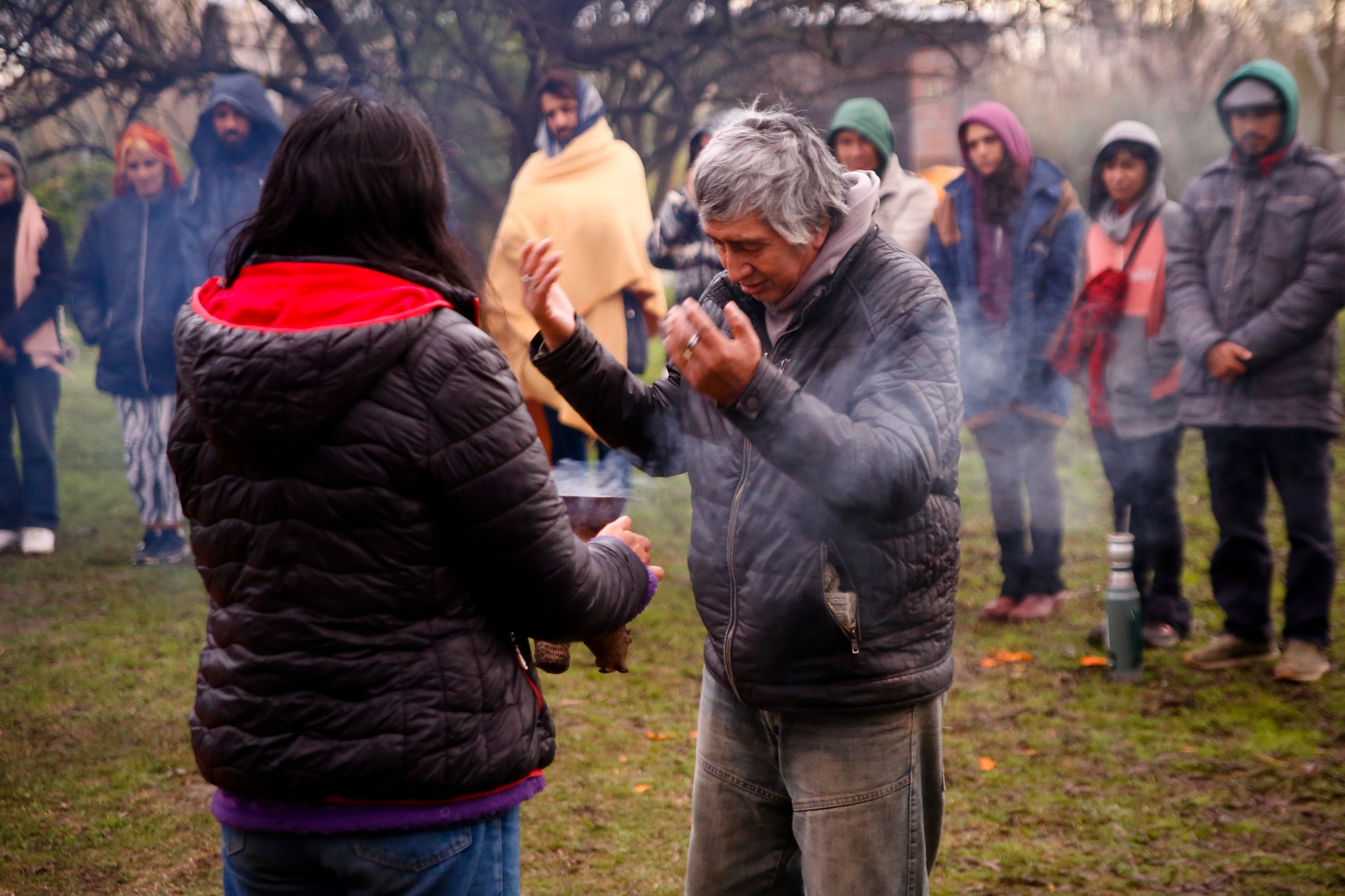 Fue el momento de la sahumada y esta ceremonia estuvo guiada por Santiago Chara, del Consejo de Ancianos de Punta Querandí; y María Calé, joven integrante de la comunidad; ambos del Pueblo Toba-Qom.