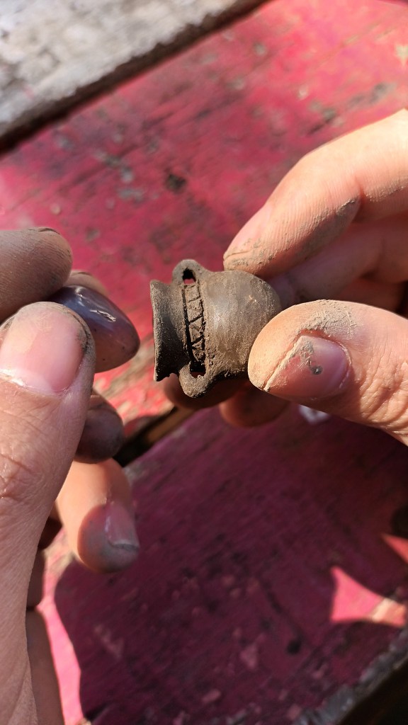Luego de concluir el objetivo de levantar un sahumador ceremonial, que se estrenó a fines de junio en la vigilia por la renovación del ciclo anual de la naturaleza, el taller se focalizó “en la creación de pequeñas vasijas para transformarlas en collares: hechas con la arcilla y la identidad de las guardas del sitio”, explicó Florencia Borowski del Taller Amaru, quien coordina estos encuentros junto a Julieta Medina del Taller Anatiri.