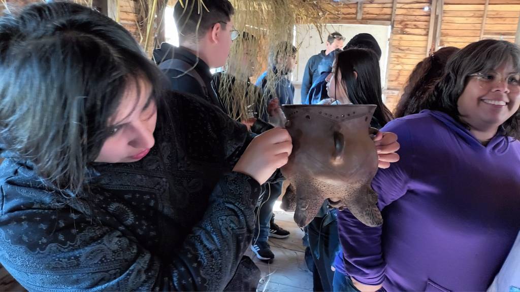 Despúes de compartir el almuerzo sentados en ronda, las visitas hicieron la recorrida guiada por el Museo Autónomo de Gestión Indígena y el conjunto del territorio comunitario, mientras que las personas de Punta Querandí desarrollaban las actividades habituales de cada semana.