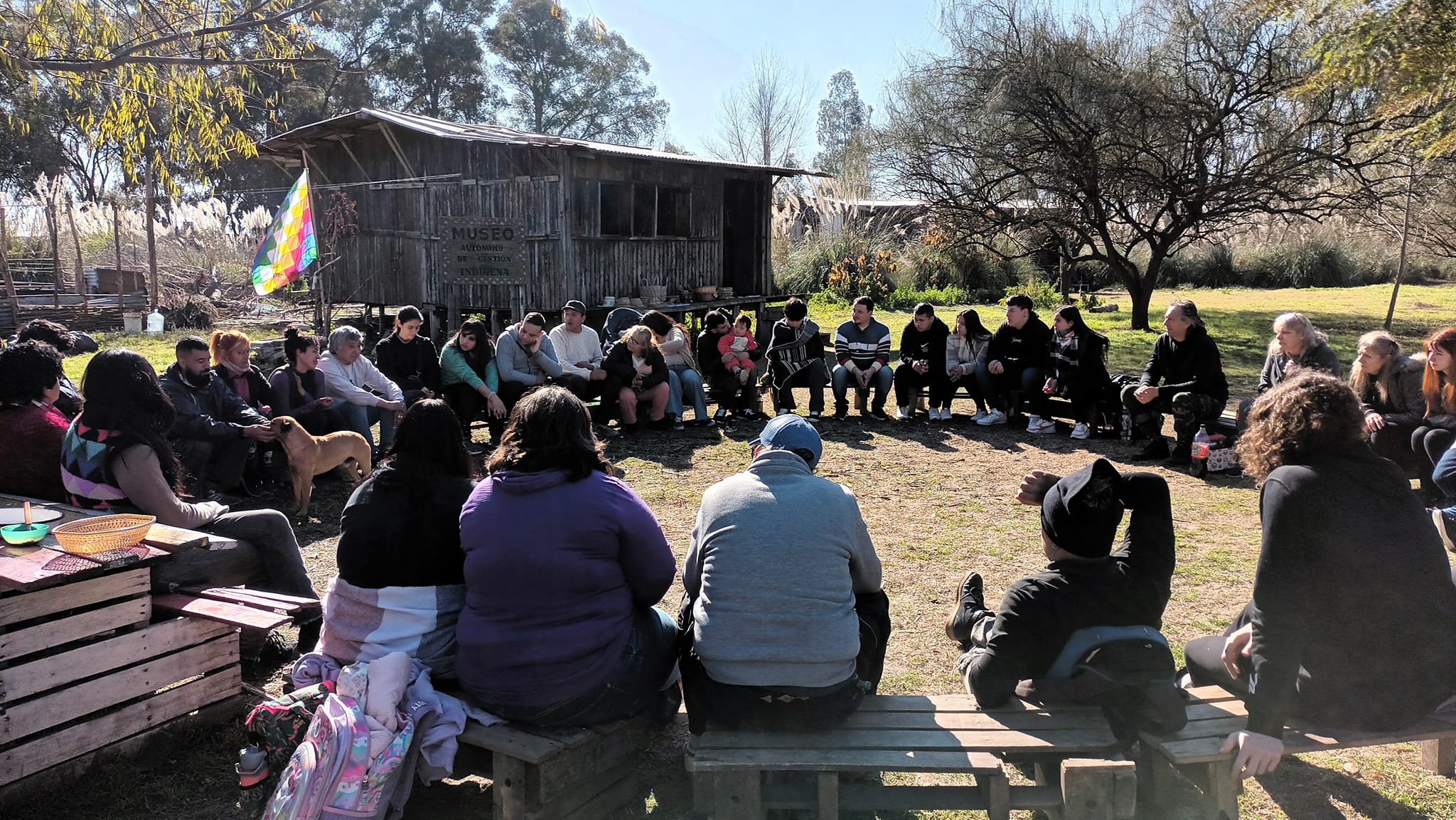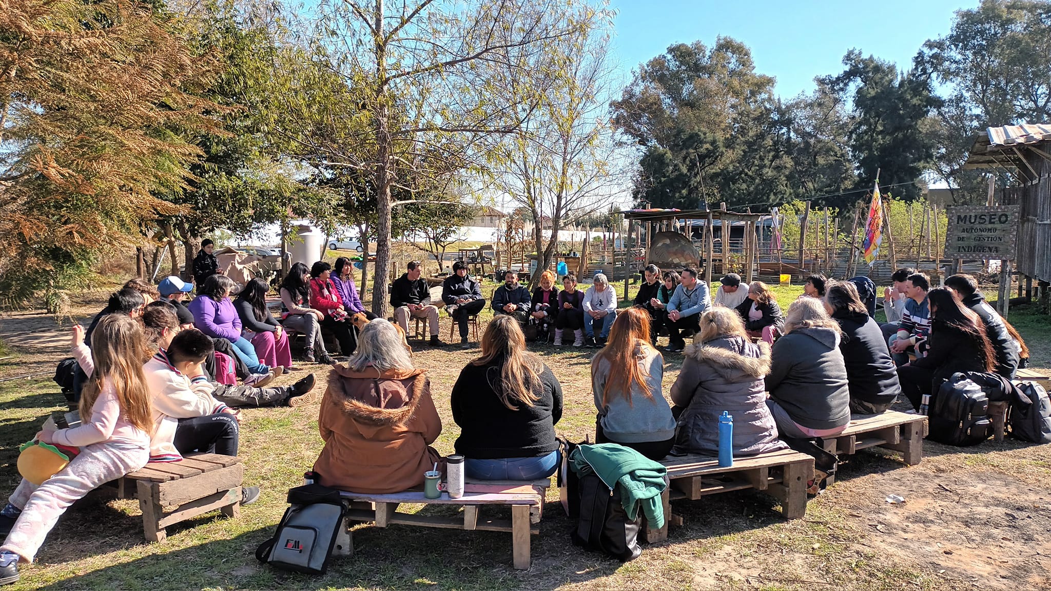 Despúes de compartir el almuerzo sentados en ronda, las visitas hicieron la recorrida guiada por el Museo Autónomo de Gestión Indígena y el conjunto del territorio comunitario, mientras que las personas de Punta Querandí desarrollaban las actividades habituales de cada semana.
