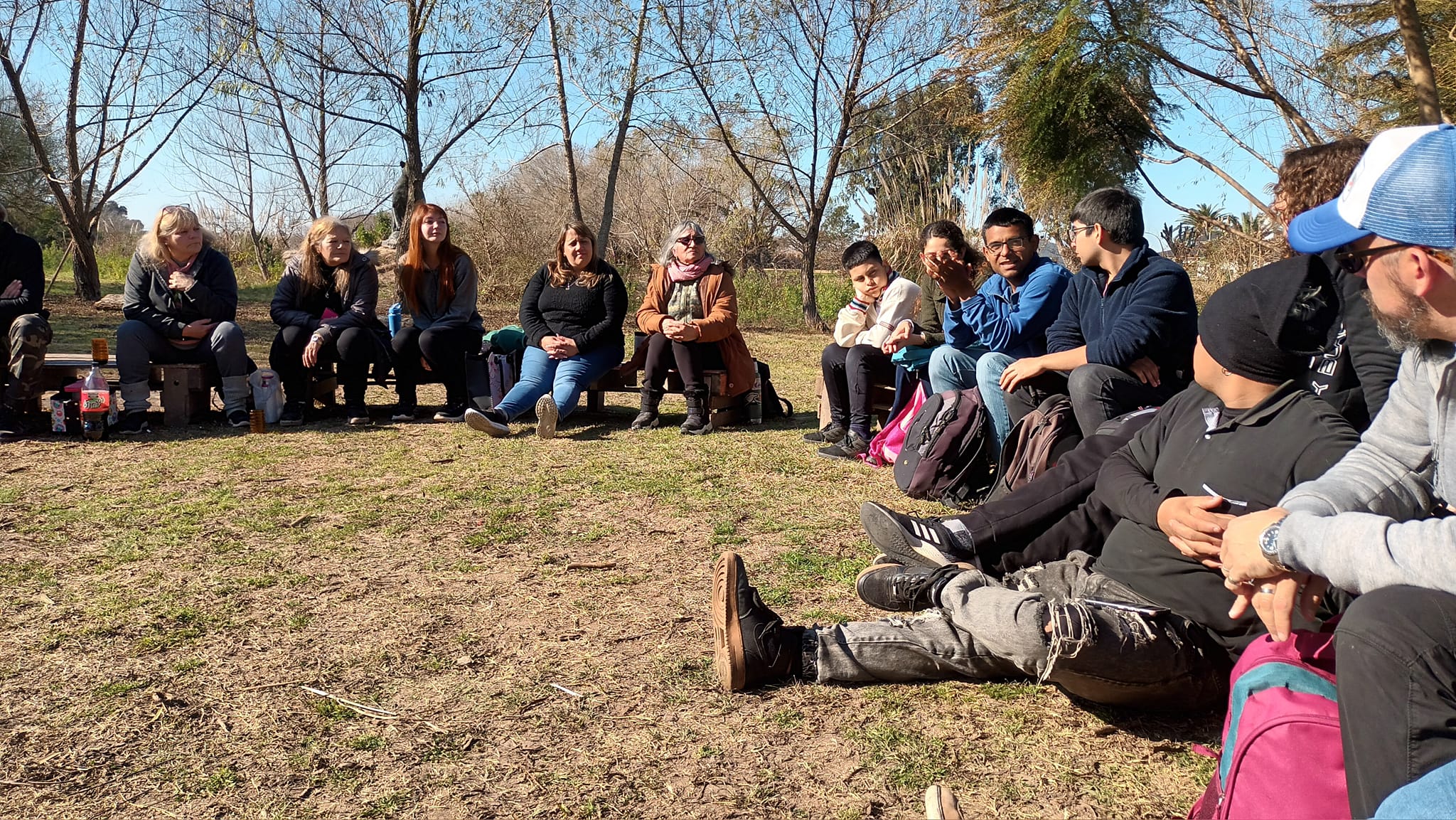 El domingo 14 de julio recibimos a un numeroso contingente de estudiantes de Historia y Educación Especial de los Institutos de Formación Docente N°29 y N°108 de Merlo y Morón, con sus docentes David Terranova y Maite Manzan.