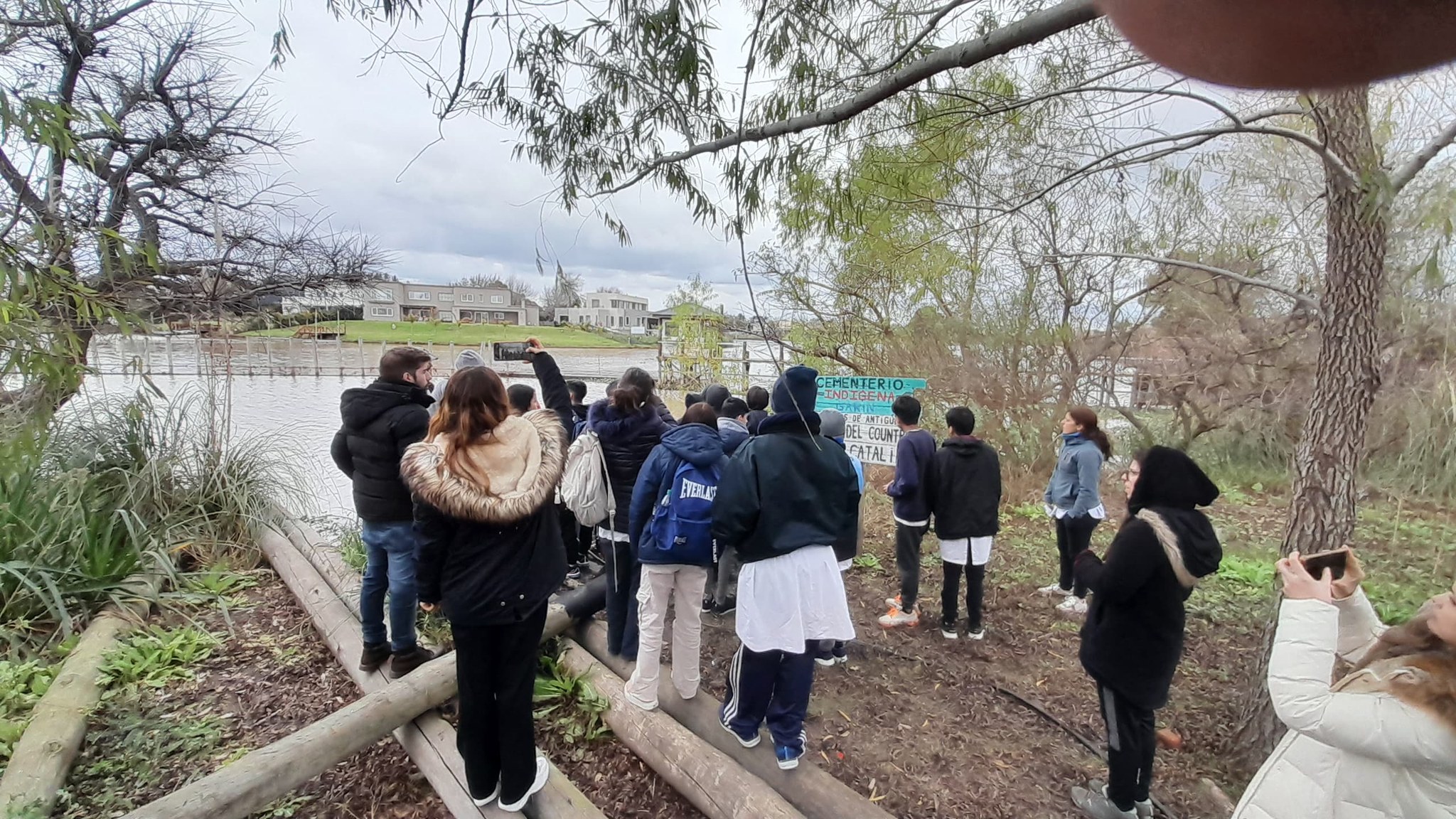 Entre fines de junio y principios de julio, medio centenar de estudiantes de la Escuela Secundaria Nº18 de Belén de Escobar hicieron dos recorridas guiadas en el sitio sagrado Punta Querandí, en la desembocadura del Arroyo Garín en el Canal Villanueva, límite entre Maschwitz y Dique Luján (Tigre), epicentro de los barrios privados responsables de la destrucción de enterratorios ancestrales y de miles de hectáreas de humedales continentales.