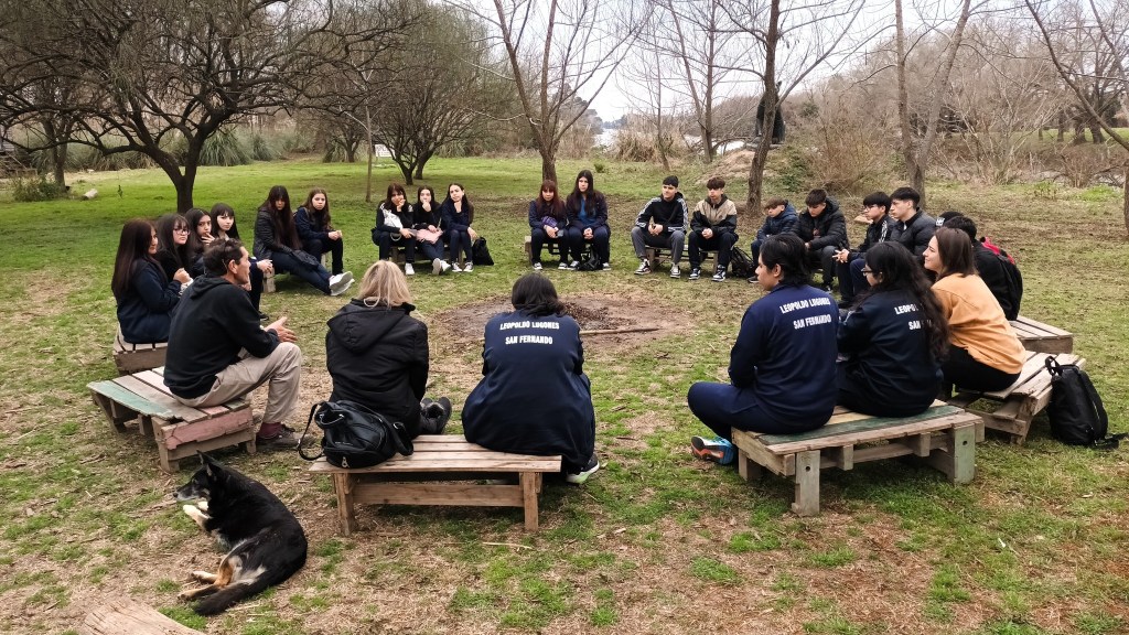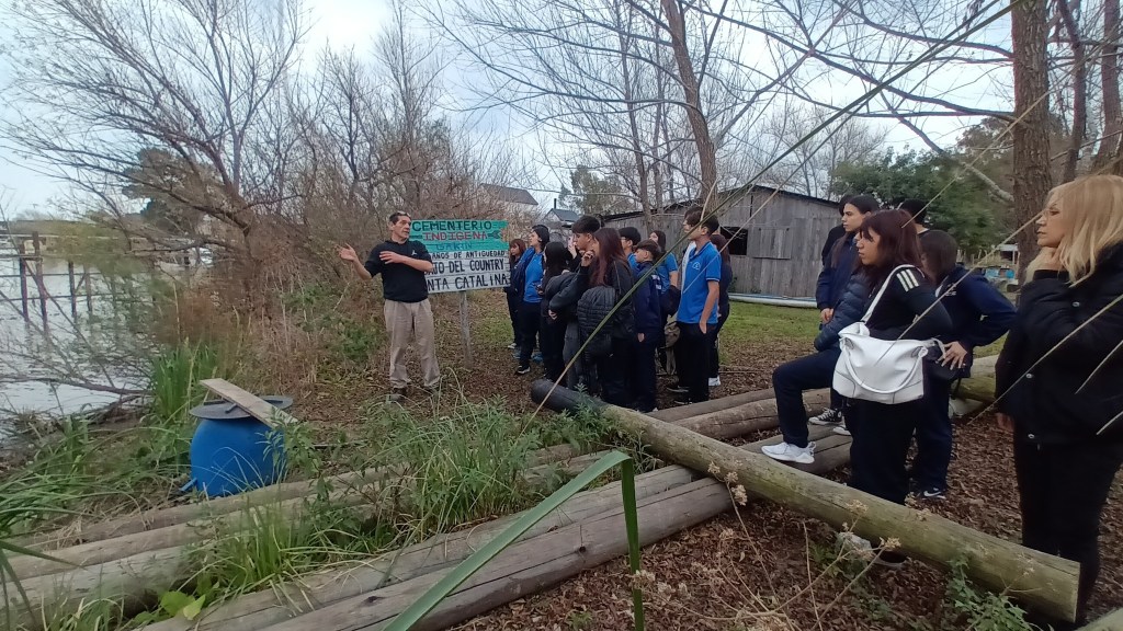 Estudiantes de cuarto año del establecimiento privado Leopoldo Lugones de la localidad de Virreyes realizaron la visita guiada por el Museo Autónomo de Gestión Indígena y las demás construcciones y espacios del territorio sagrado de los pueblos originarios, ubicado en el límite de Tigre y Escobar, epicentro de los barrios privados responsables de la destrucción de enterratorios ancestrales y miles de hectáreas de humedales continentales.