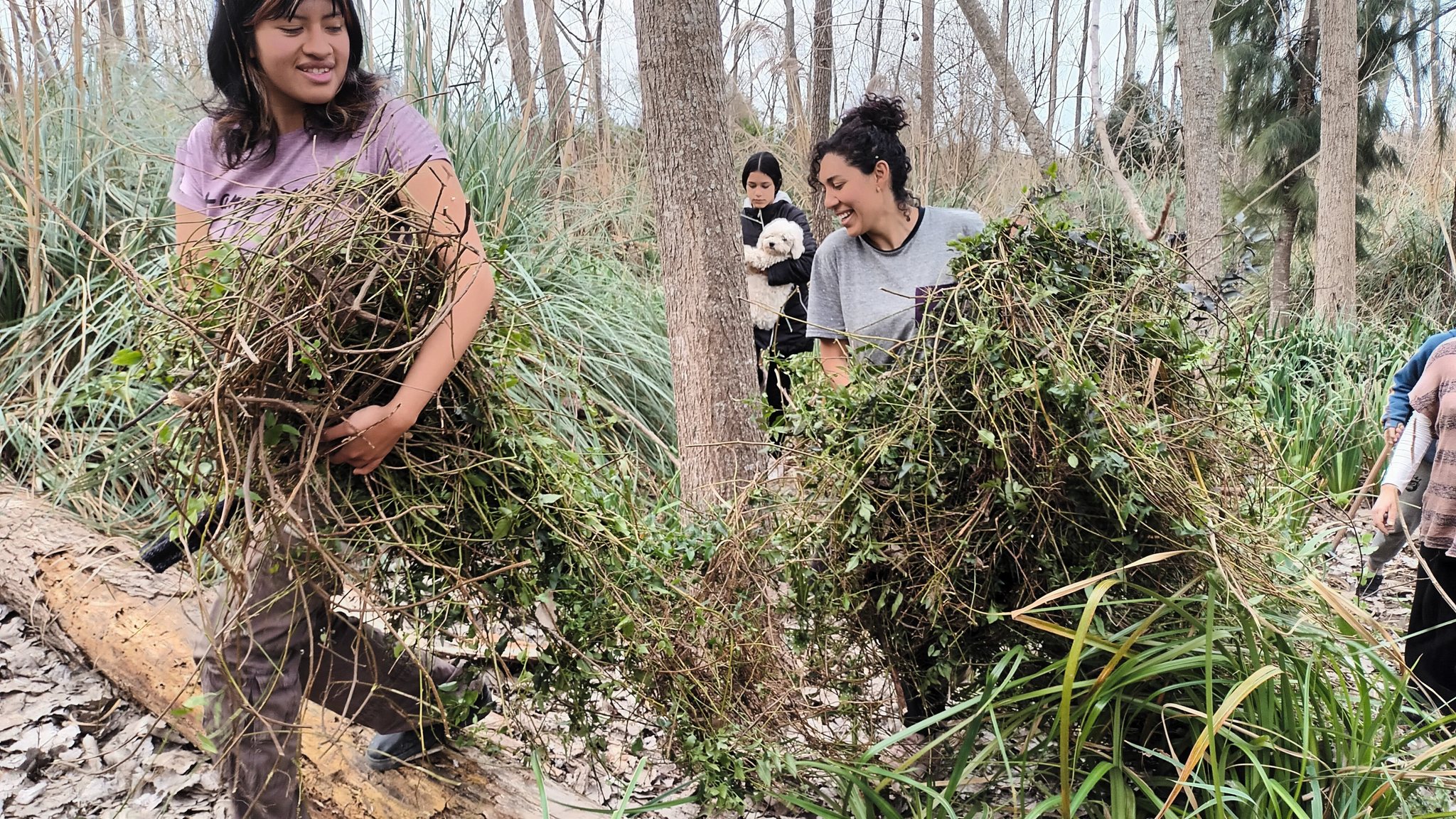 También continuamos con el combate a las enredaderas exóticas que vienen causando un gran daño en el monte de sauces.