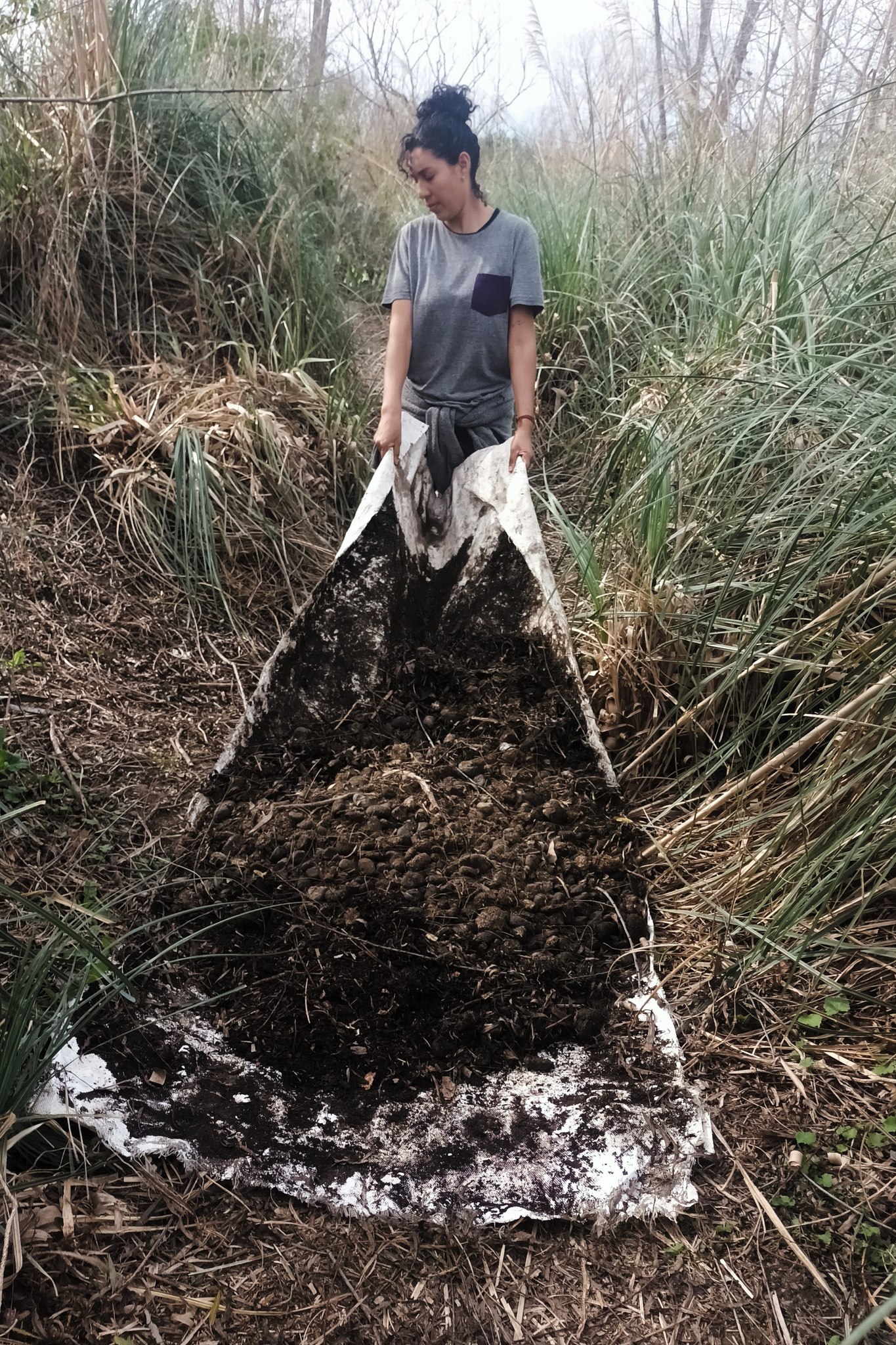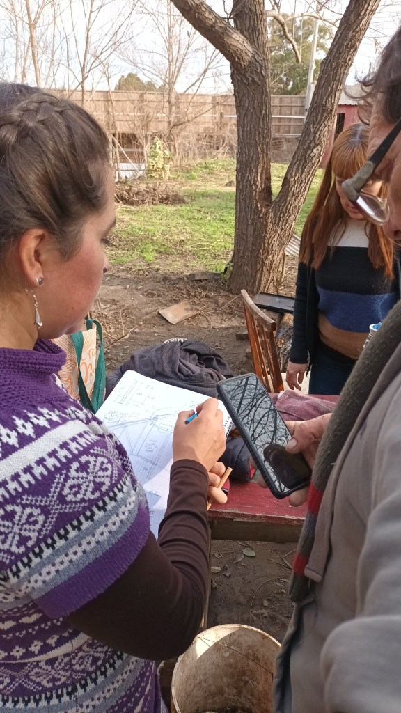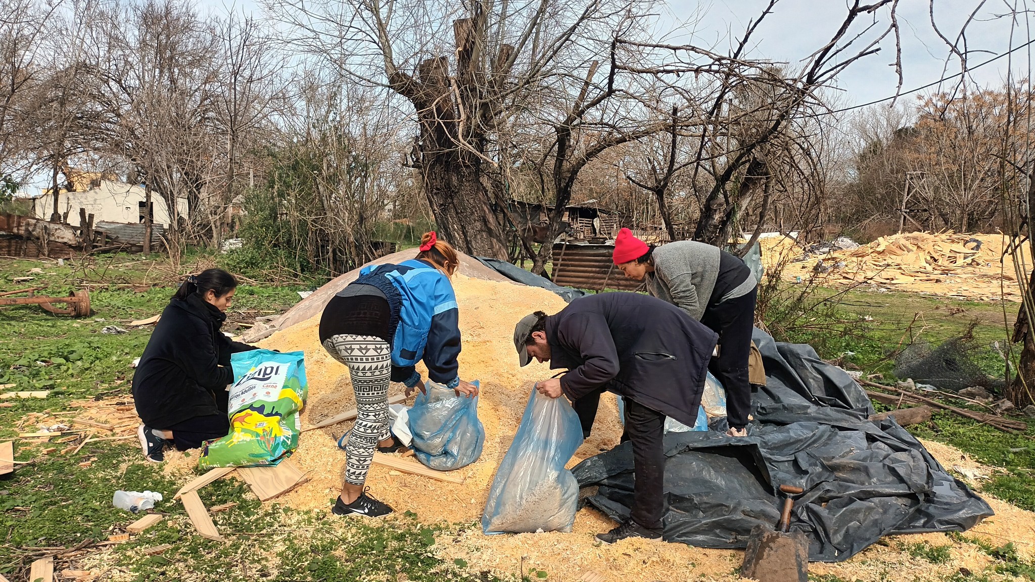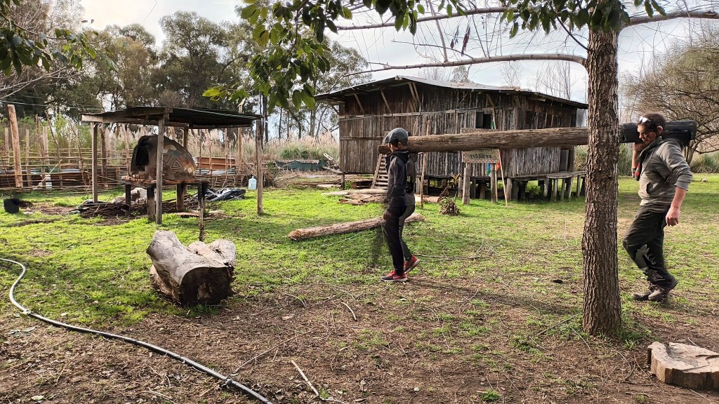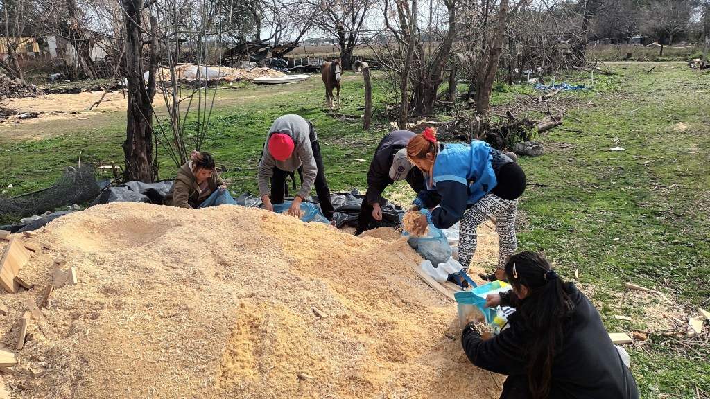 Siguiendo con los preparativos para renovar las paredes de barro, buscamos aserrín en el terreno de la familia de Erica y Gallo, del otro lado del Arroyo Garín.
