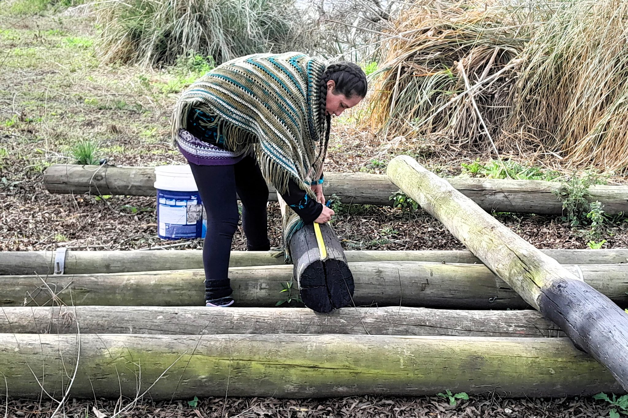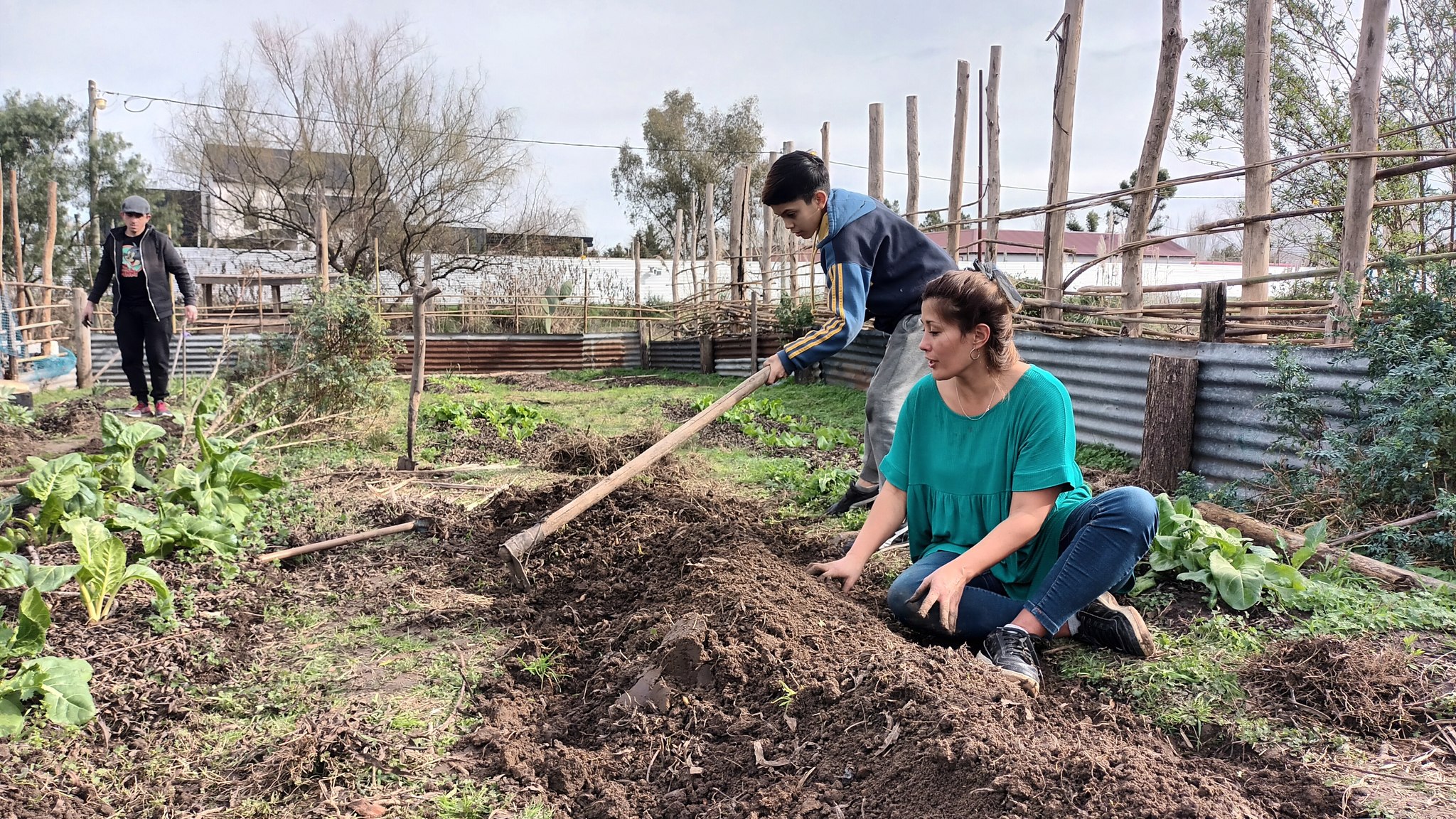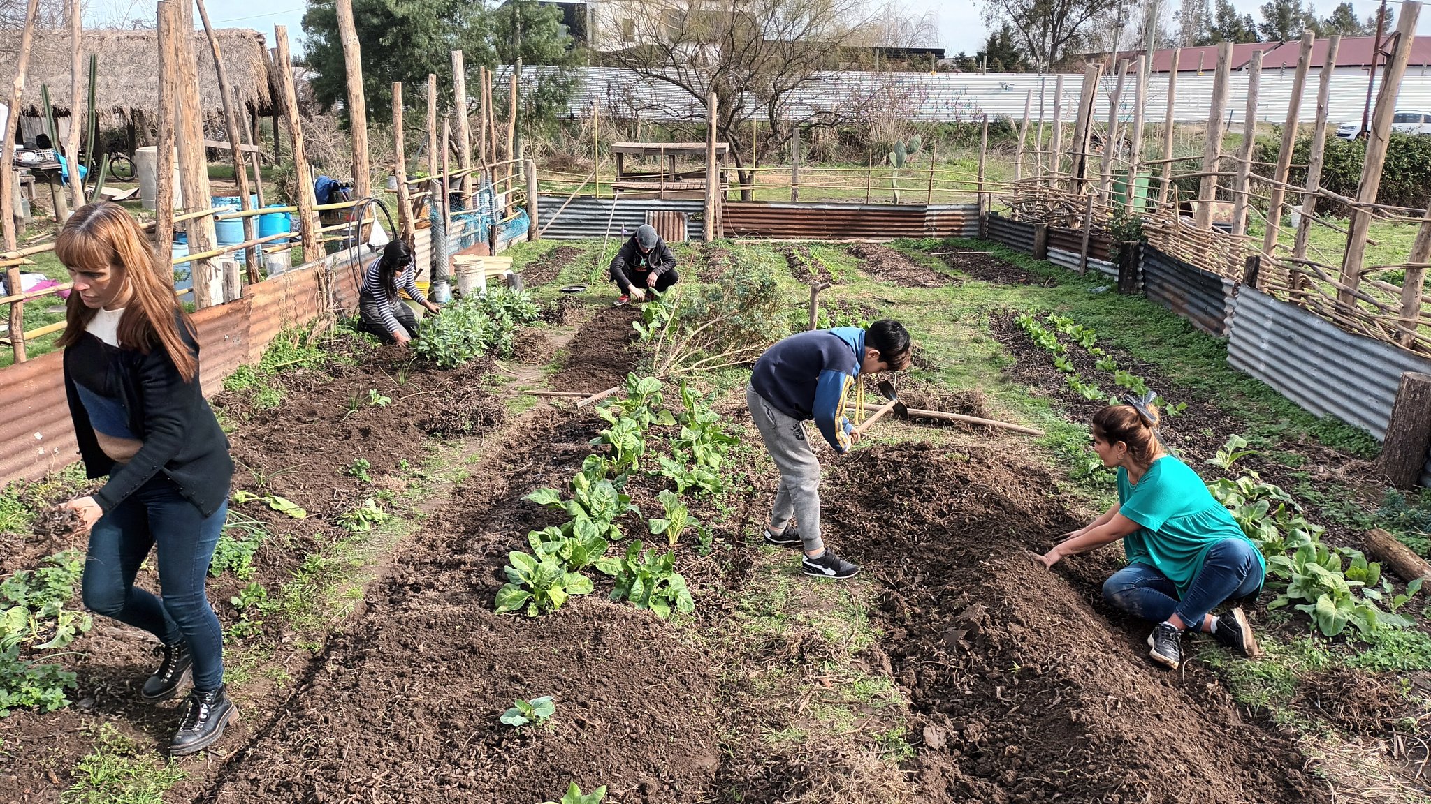 En la huerta hicimos tareas de mantenimiento y comenzamos a reconstruir el vivero: se prepararon los postes para la estructura y se colocaron los primeros.