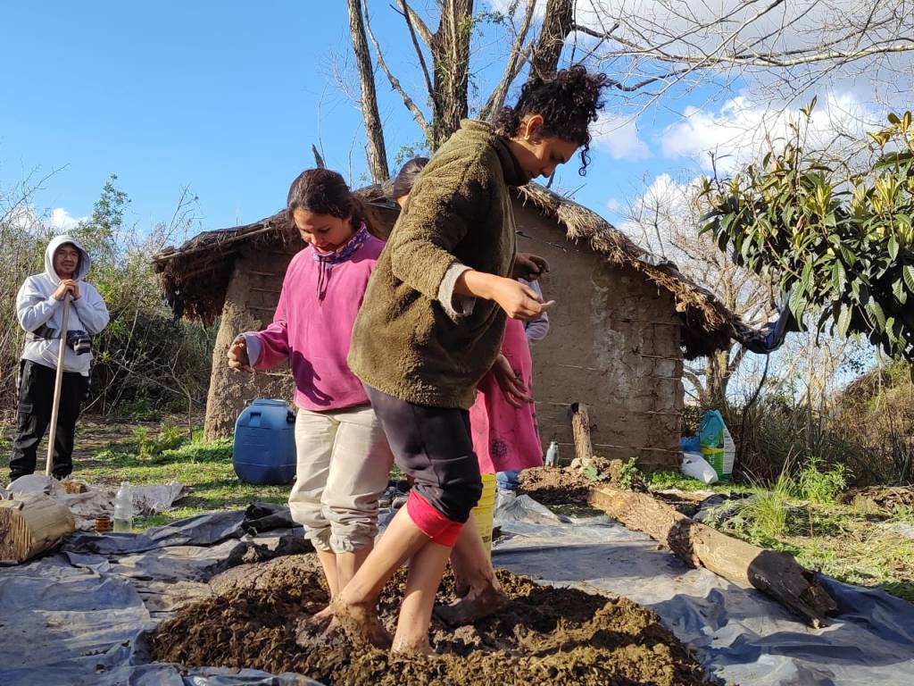 Además, se remojaron y ordenaron las fibras de totora para los próximos talleres de cestería y se preparó el barro que se usará para revocar las paredes del Opy, construcción ceremonial guaraní, un espacio clave de la resistencia territorial que fue destruido en dos oportunidades a fines de 2016.