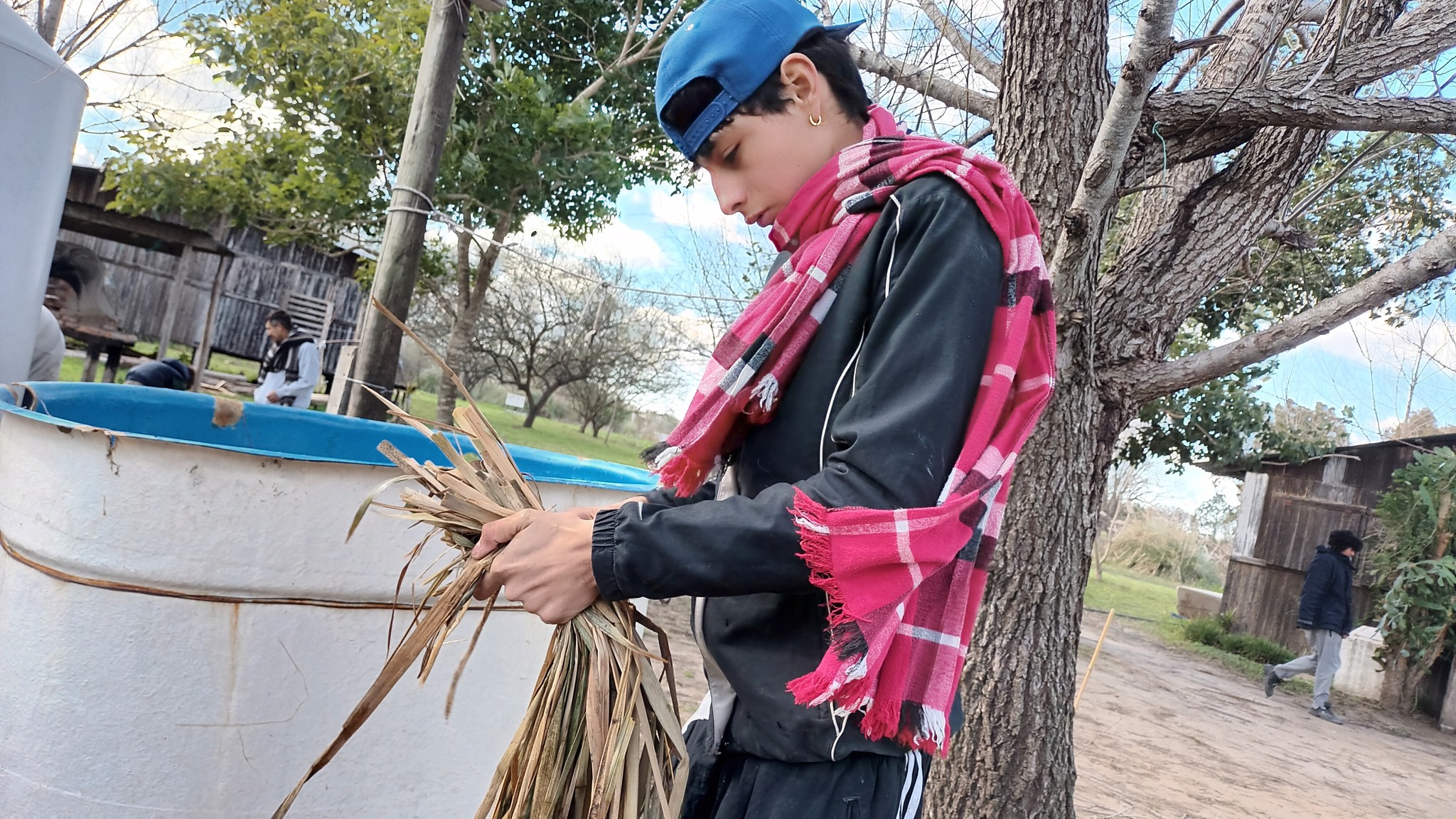 Además, se remojaron y ordenaron las fibras de totora para los próximos talleres de cestería y se preparó el barro que se usará para revocar las paredes del Opy, construcción ceremonial guaraní, un espacio clave de la resistencia territorial que fue destruido en dos oportunidades a fines de 2016.