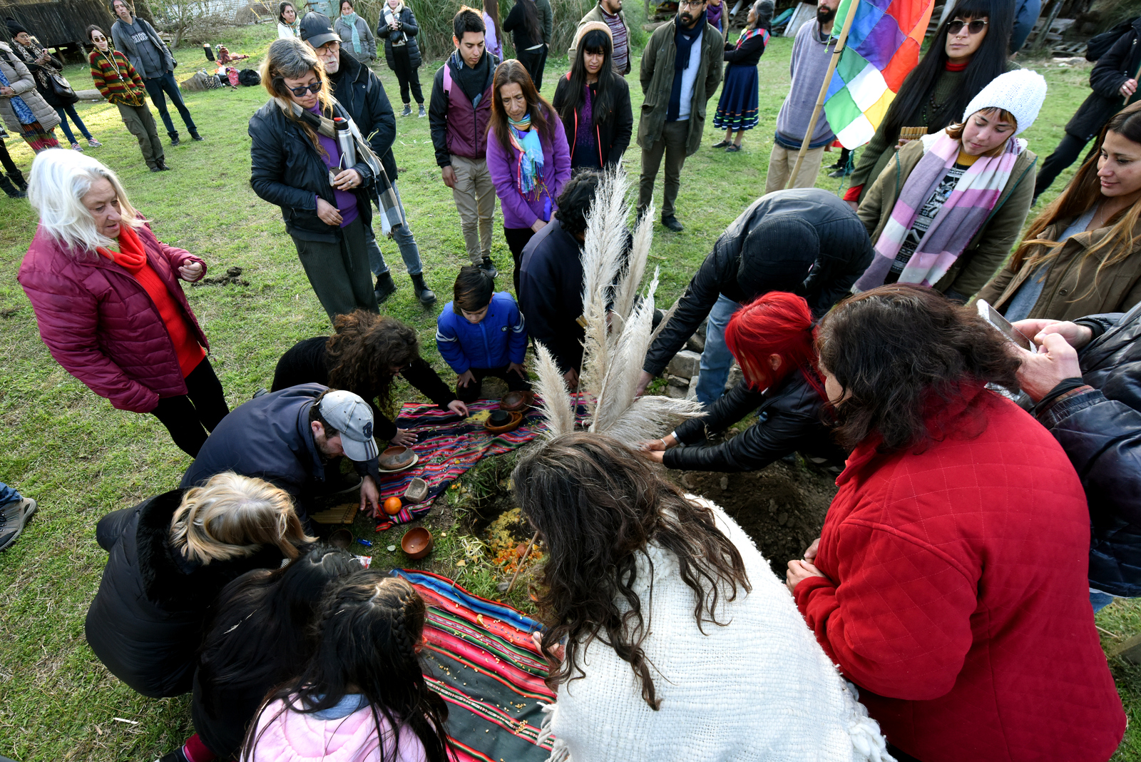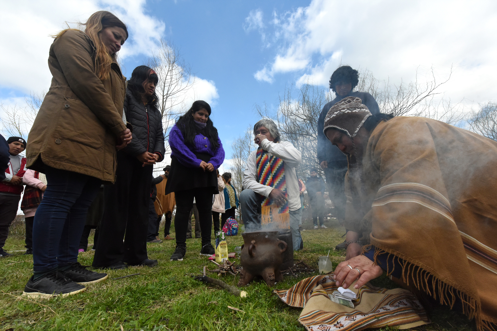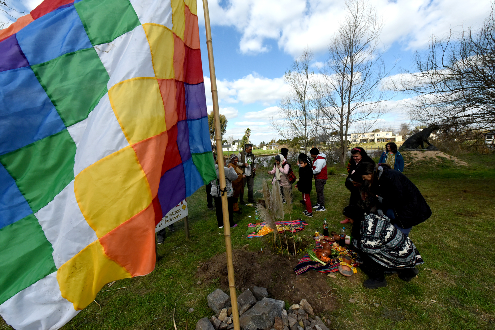 En esta ocasión, la responsabilidad de guiar la ceremonia estuvo en manos de Elizabeth Vargas Lazcano (integrante de fraternidades de la colectividad boliviana) y el referente qom Santiago Chara del Consejo de Ancianos de Punta Querandí. Ambos hicieron una sahumada a toda la asistencia e invitaron a iniciar las ofrendas de alimentos y bebidas en un pozo realizado en la Apacheta que horas después volvería a ser tapado con tierra y piedras.