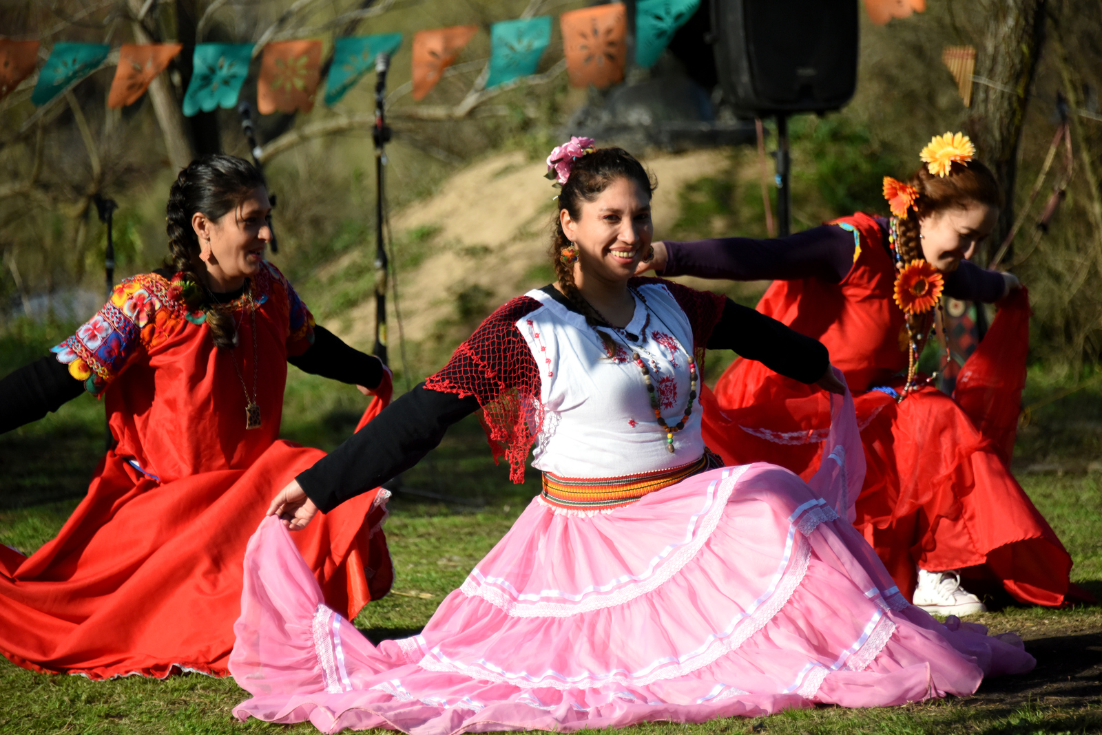 Primero compartimos bailes de Paraguay protagonizados por Liliana Amarilla, Noemí Ocampos y Yéssica Rodríguez, vecinas de Tigre y todas ellas parte vital de las clases de lengua guaraní, donde primero comenzaron a participar como estudiantes y luego formaron un equipo docente junto a Verónica Gómez, la responsable de este curso desde 2021.