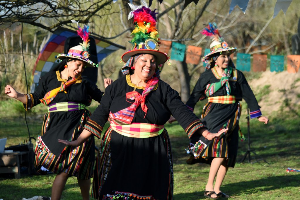 Inmediatamente después llegó el turno de las danzas de morenadas y llameradas de Bolivia, interpretadas por un grupo de amigos de distintas fraternidades que se unen en cada una de las celebraciones de Punta Querandí. Este vínculo comenzó en los últimos años a partir de la participación de dos de ellas en el curso de quechua: Mariela Condorí y Elizabeth Vargas Lazcano, a quienes en esta oportunidad se le sumaron Kelly y Nicole Chambi Alvarez, Hugo Ramos, Melva Soarez y Omar Maciel.