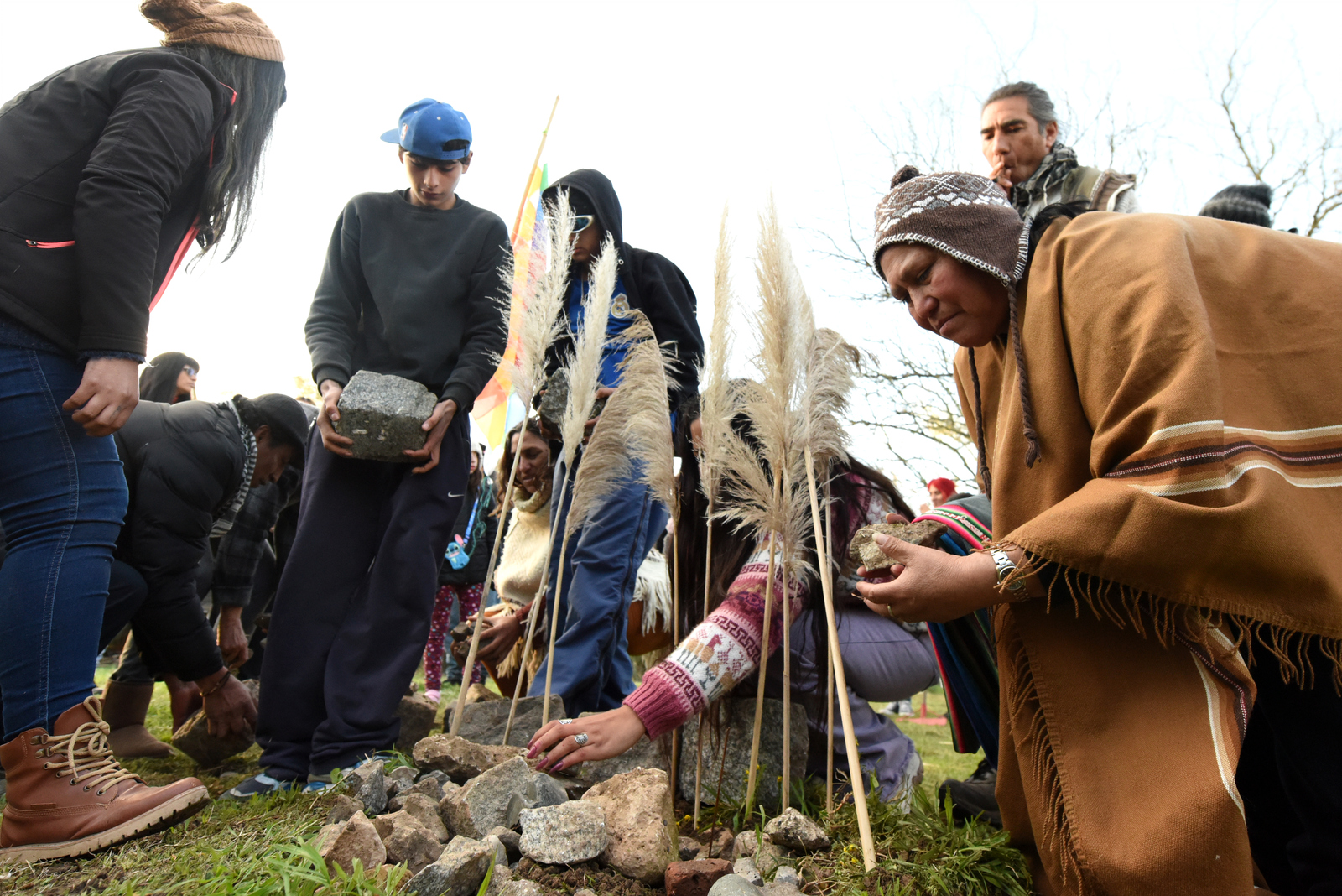 En primer lugar, los integrantes de Punta Querandí y la Unión de Pueblos Originarios de Tigre y Escobar se presentaron en una ronda alrededor de la Apacheta (lugar de ceremonias de la cultura andina), agradeciendo por la presencia de tanta gente y explicando el origen de la lucha en defensa de este territorio sobreviviente a los barrios privados, así como los distintos logros alcanzados.