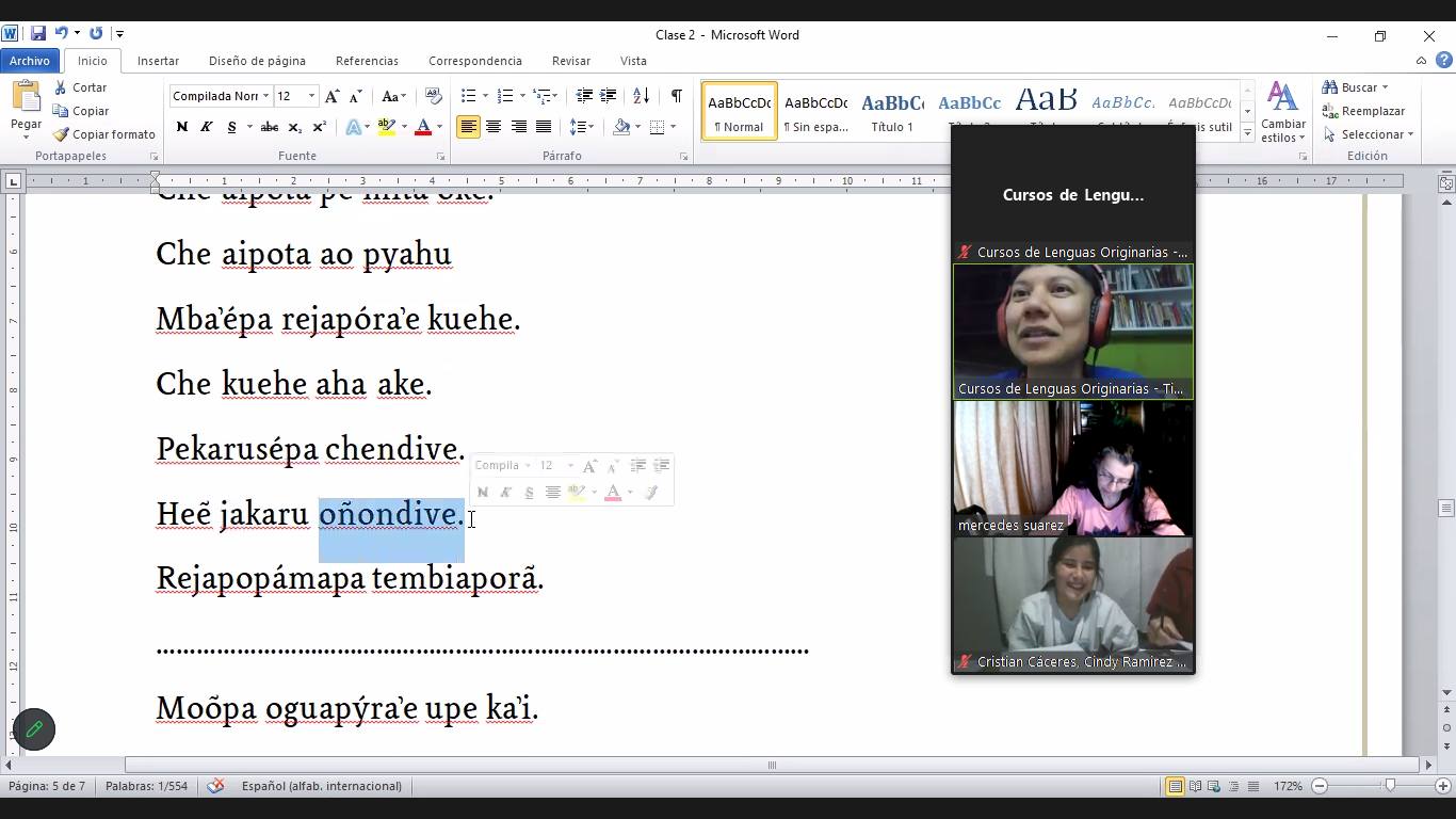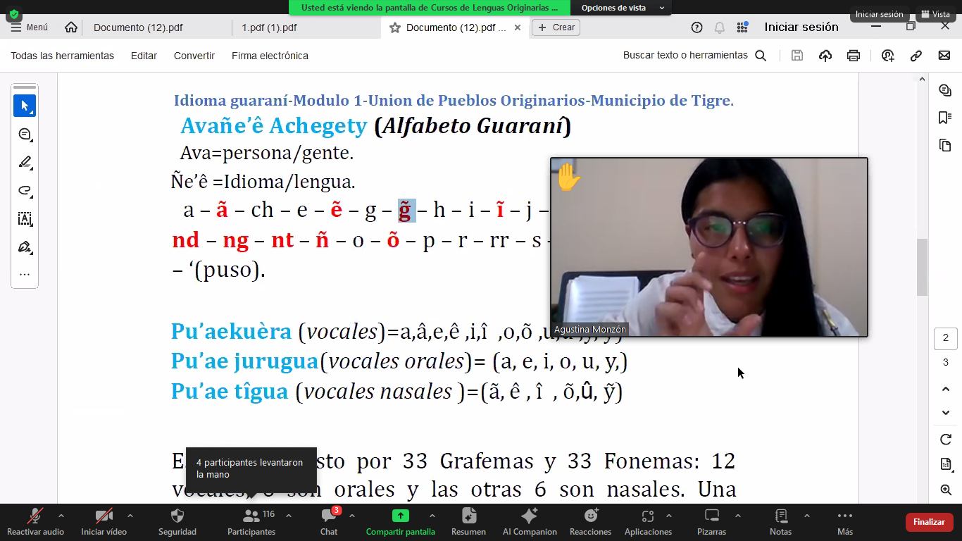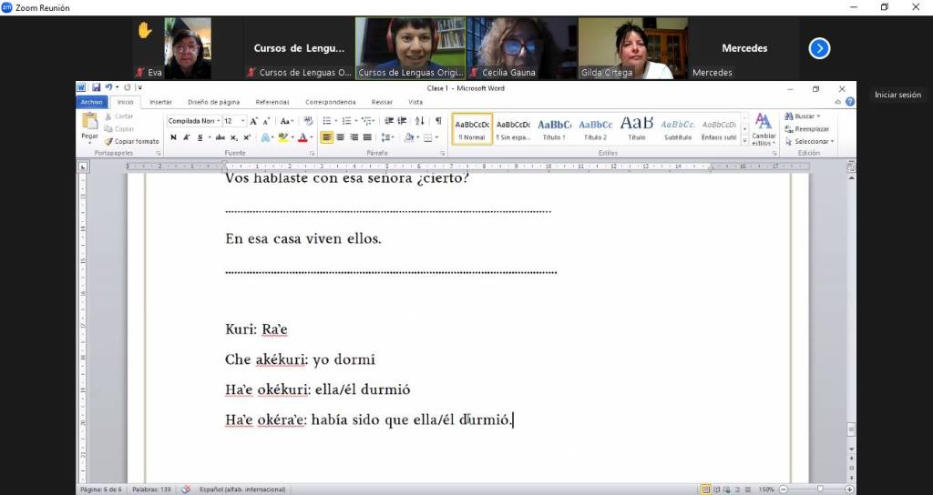 Los viernes se realizan las clases de los niveles 1 y 2 de Guaraní, que llevan adelante las mbo’eharakuéra Verónica Gómez, Noemí Ocampos, Yéssica Rodríguez y Liliana Bernal, vecinas de Quilmes y de Tigre.