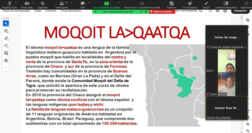 Los sábados llega el momento de Moqoit la>qaatqa (Mocoví) con la coordinación de la napaxguinataxanaxa Deolinda Salteño desde el sur de la provincia de Chaco.