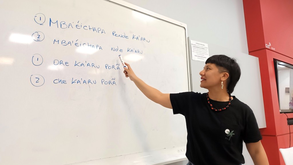 Liliana Bernal Amarilla, vecina de Las Tunas, también forma parte del equipo docente de los cursos de guaraní y lo define de forma contundente: «Es una de las experiencias más importantes y significativas en mi vida».