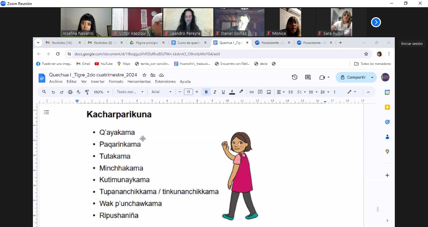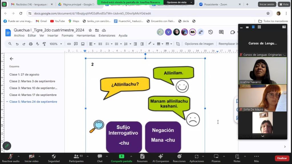 Los martes se cursan los niveles 1 y 2 de Quechua, a cargo de las yachachiqkuna Josefina Navarro desde Jujuy y Paola Del Federico desde Buenos Aires.