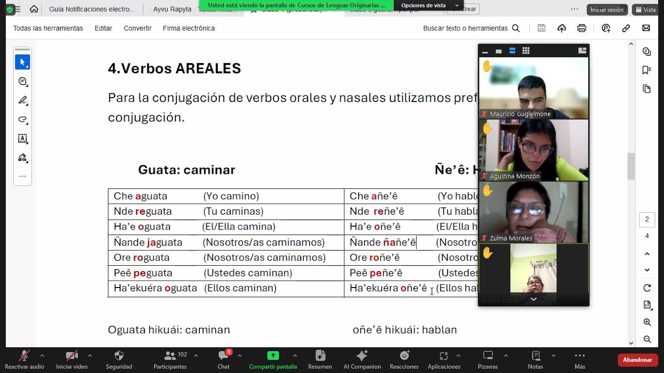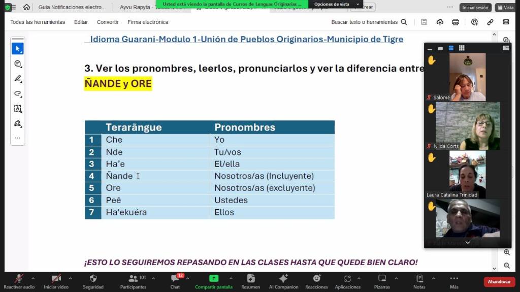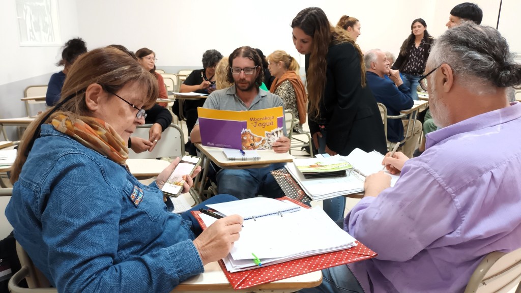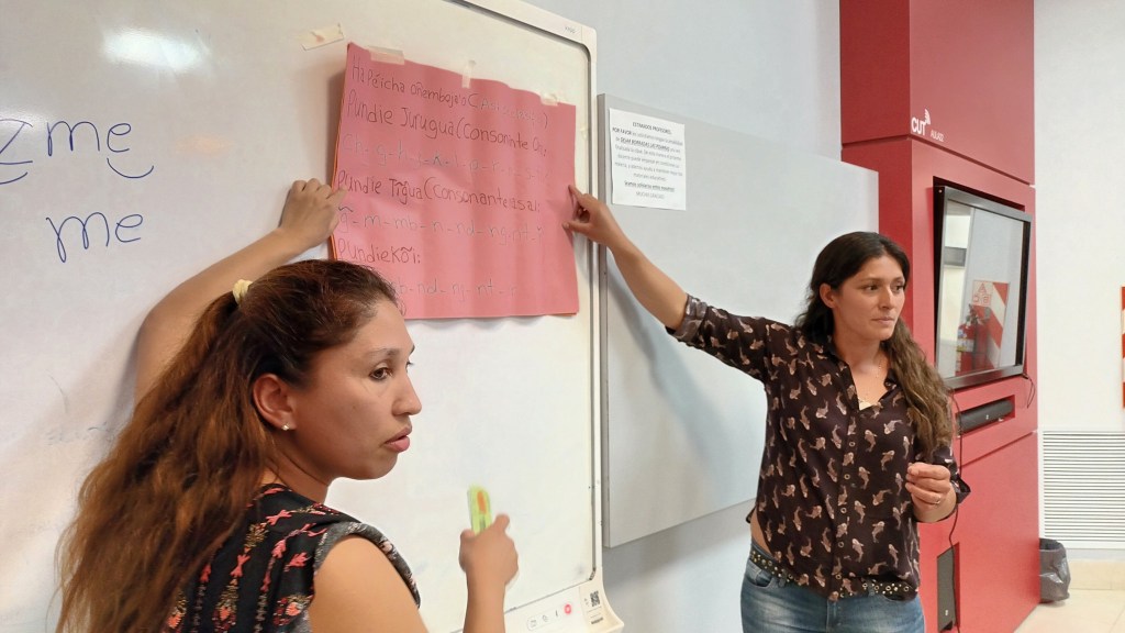 Los viernes se realizan las clases de los niveles 1 y 2 de Guaraní, que llevan adelante las mbo’eharakuéra Verónica Gómez, Noemí Ocampos, Yéssica Rodríguez y Liliana Bernal, vecinas de Quilmes y de Tigre.