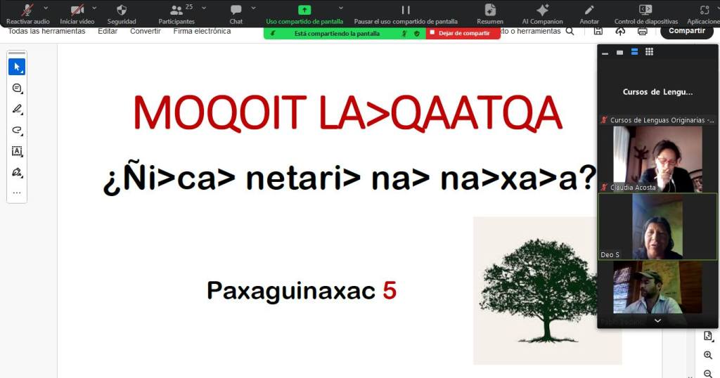 Los sábados llega el momento de Moqoit la>qaatqa (Mocoví) con la coordinación de la napaxguinataxanaxa Deolinda Salteño desde el sur de la provincia de Chaco.