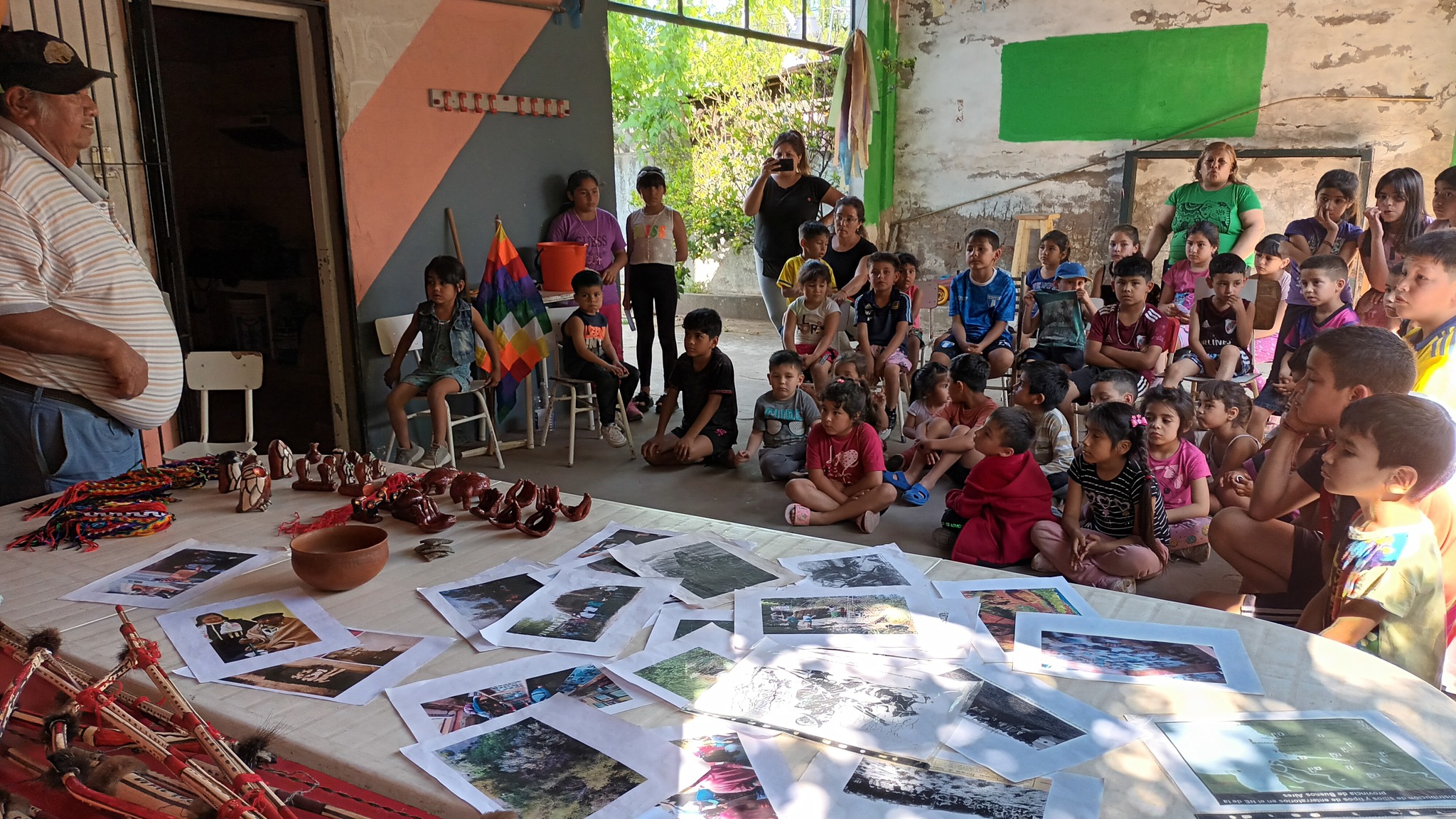En el marco de su trabajo educativo, representantes de la Unión de Pueblos Originarios compartieron sus experiencias y luchas a niños, niñas y adolescentes en el Centro Comunitario Lagarto Juancho del barrio Vucetich de José C. Paz y en la Escuela Primaria N°31 de la localidad de Savio del Partido de Escobar.