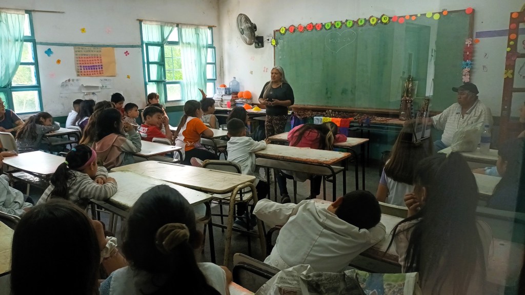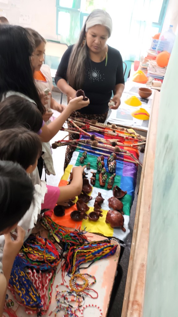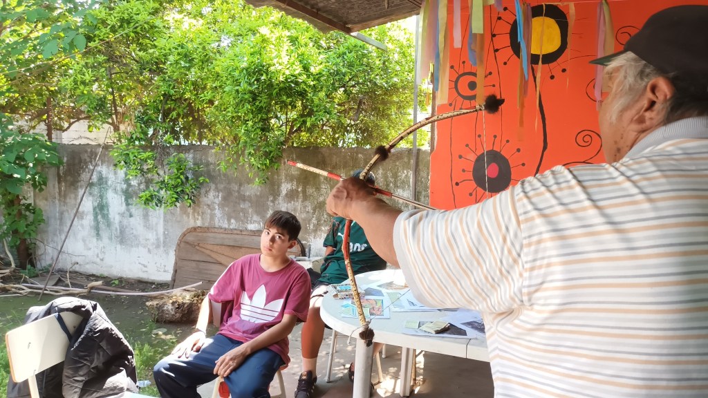 Allí llegamos a través de la propuesta de la orientadora escolar Andrea López, quien visitó la Comunidad Indígena Punta Querandí en febrero y desde ese momento tuvo la idea de invitar a integrantes de la Unión de Pueblos Originarios de Tigre y Escobar a los establecimientos donde trabaja.