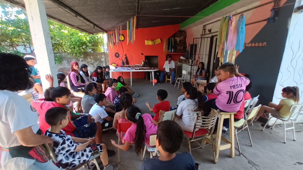 La primera jornada fue el miércoles 16 de octubre con chicos y chicas de distintas edades en uno de los espacios de la Red El Encuentro de José C. Paz: el Centro Comunitario Lagarto Juancho, fundado y coordinado por Lucía Espíndola.