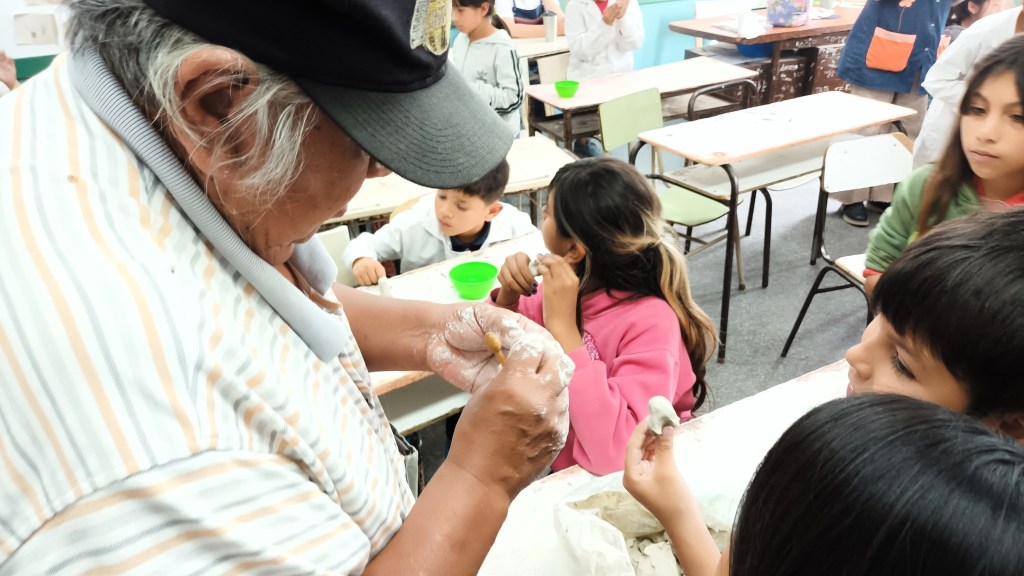 Entre otras personas, participaron los referentes indígenas Cintia López, cacica de la Comunidad Qompí de Garín (Escobar); y el artesano toba Amancio Rojas de Ricardo Rojas (Tigre), quien compartió su saber con el arte ancestral de la cerámica: con su guía, los chicos y chicas crearon lechuzas, una artesanía característica de la cultura toba-qom.