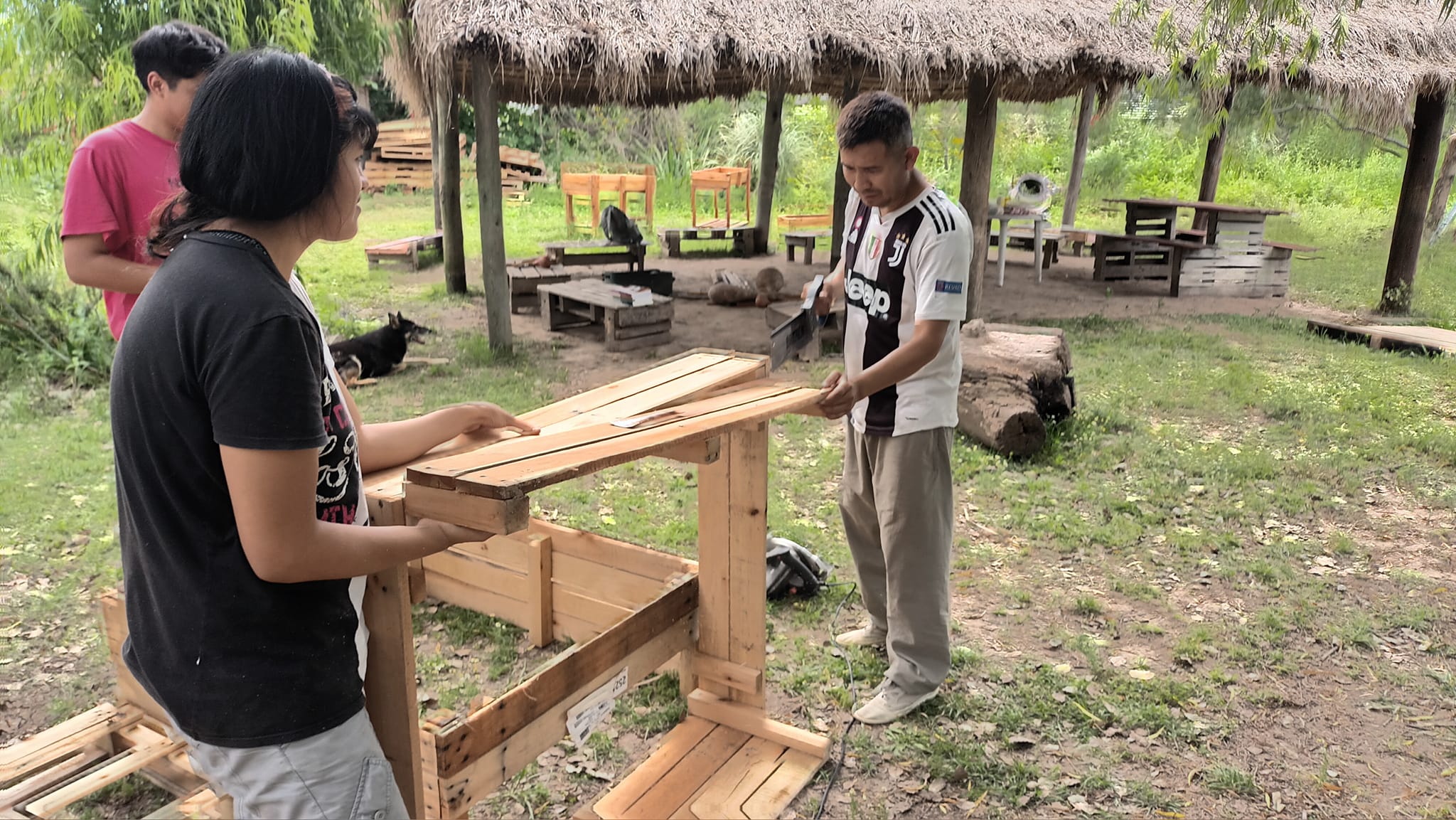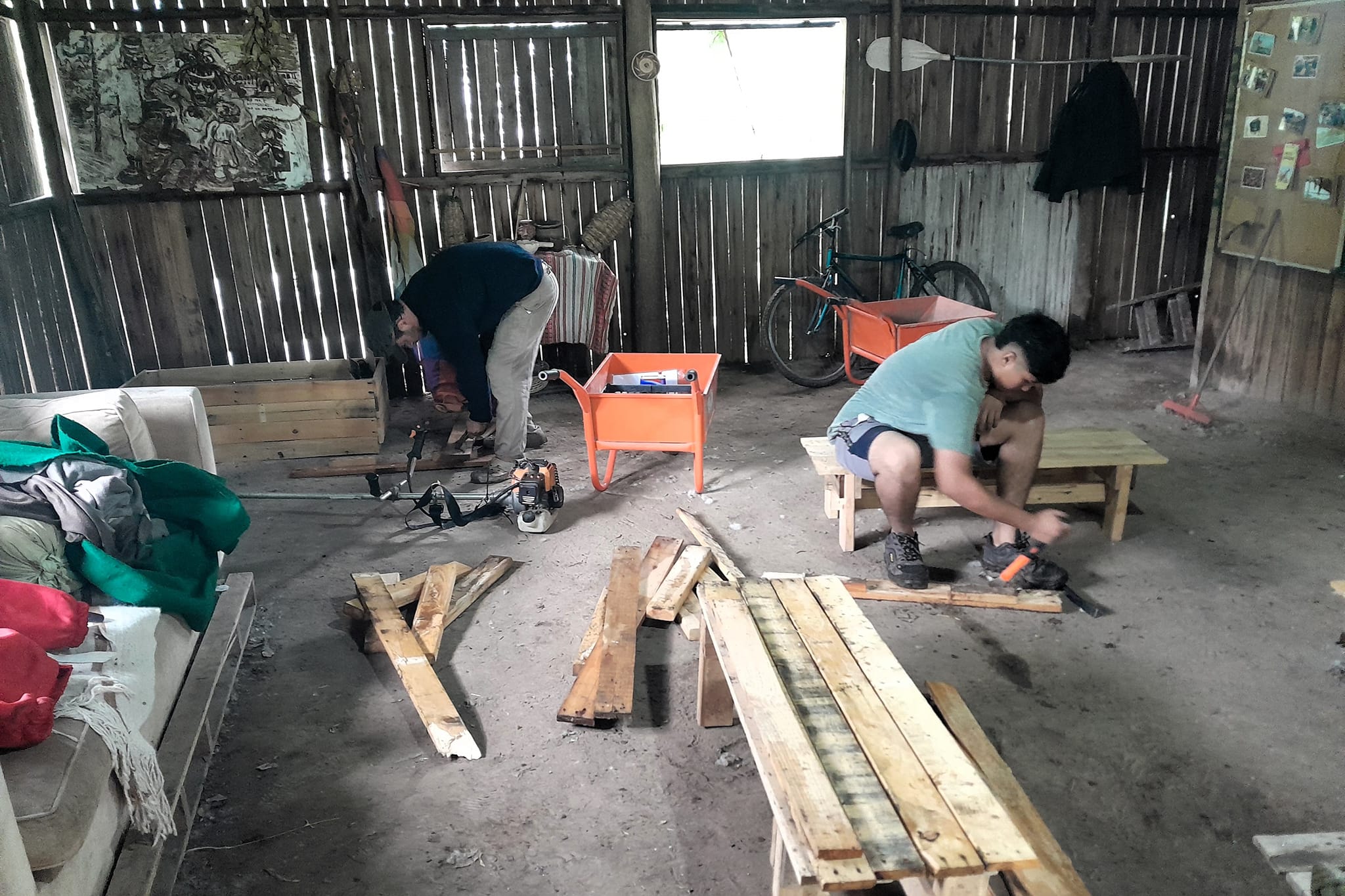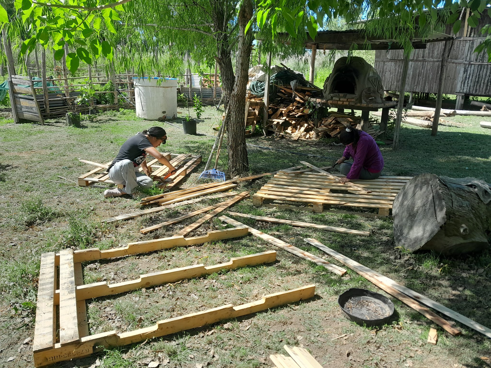 La semana siguiente, el domingo 17 de noviembre, continuamos con el corte de pasto, el trabajo en la huerta trasplantando tomates y albahaca; y construyendo los nuevos bancos, todas actividades que continuarán durante las próximas jornadas.