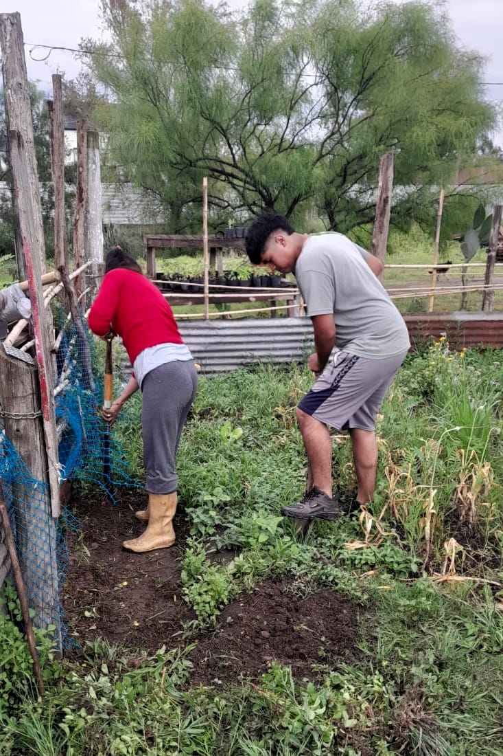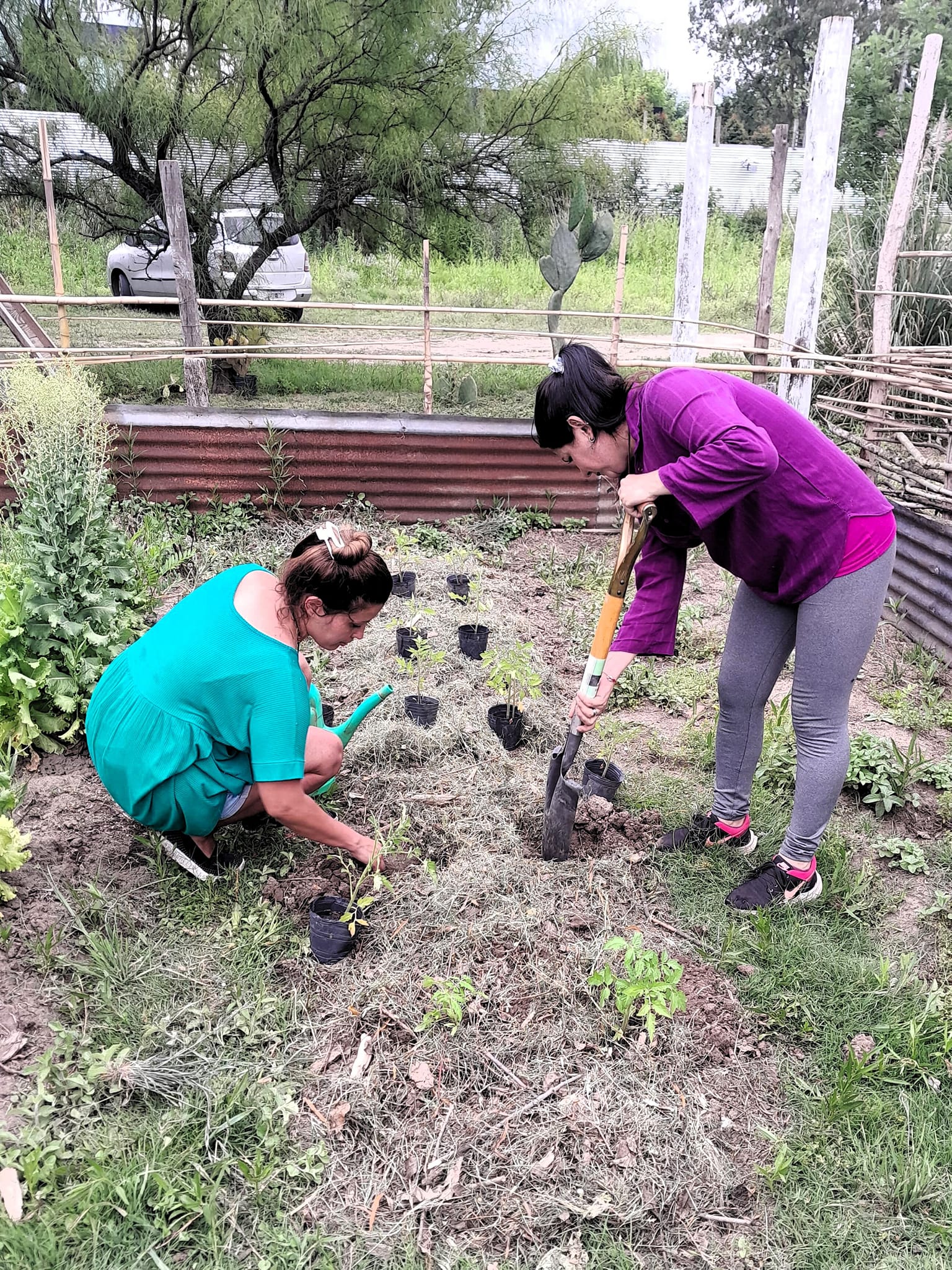 Después del almuerzo cortamos el pasto, trasplantamos tomates en la huerta y preparamos la pasta de cerámica para los próximos talleres de alfarería.