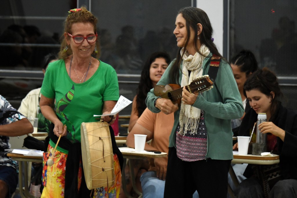 Cecilia Gauna y Karina Monteagudo cantaron canciones con charango y caja chayera en el cierre de Quechua.