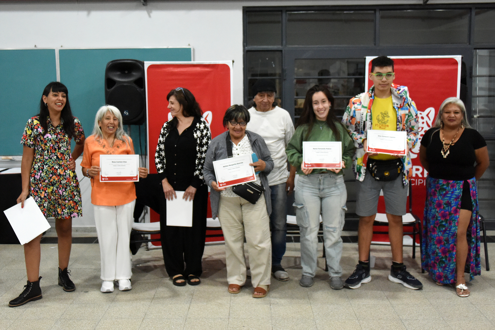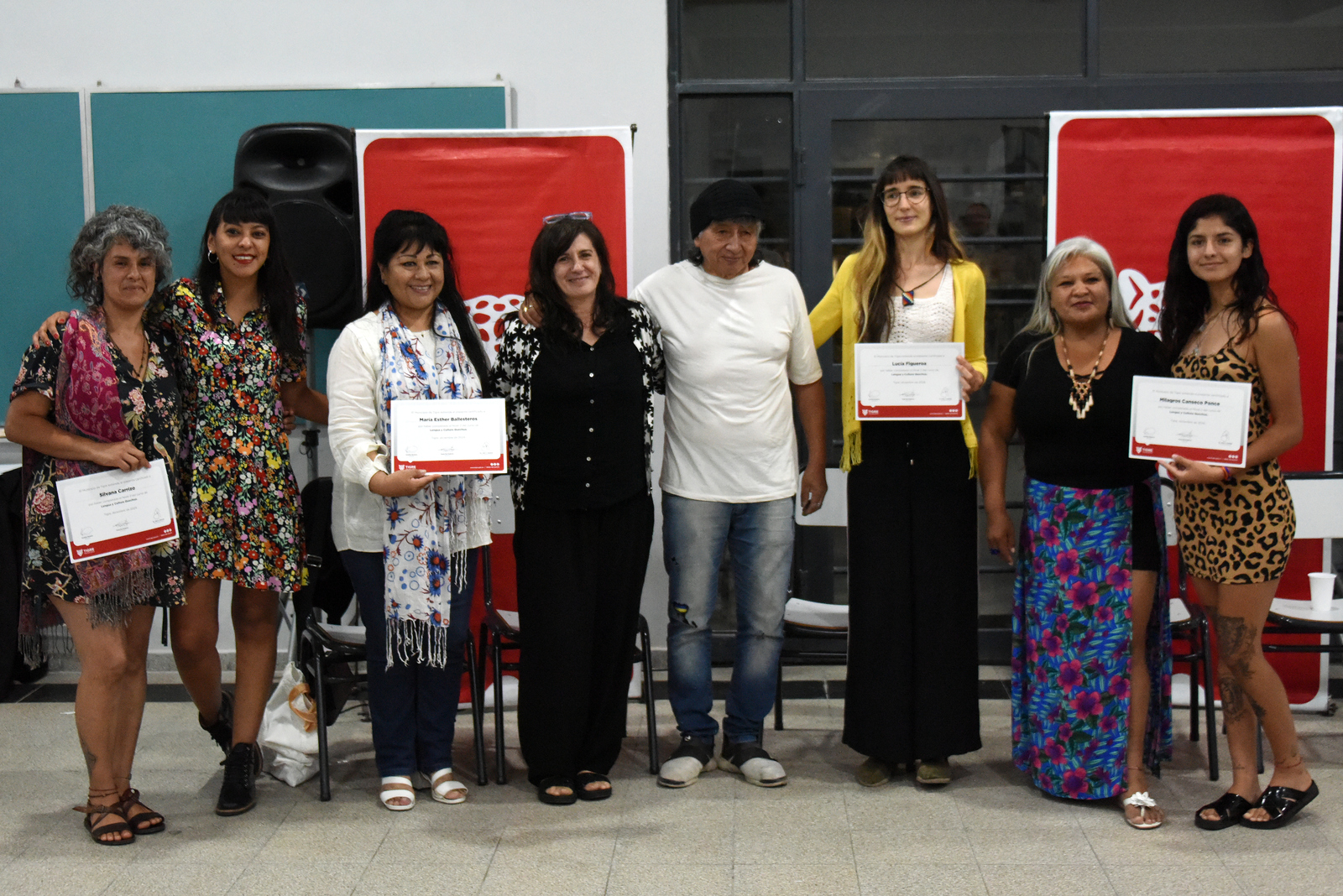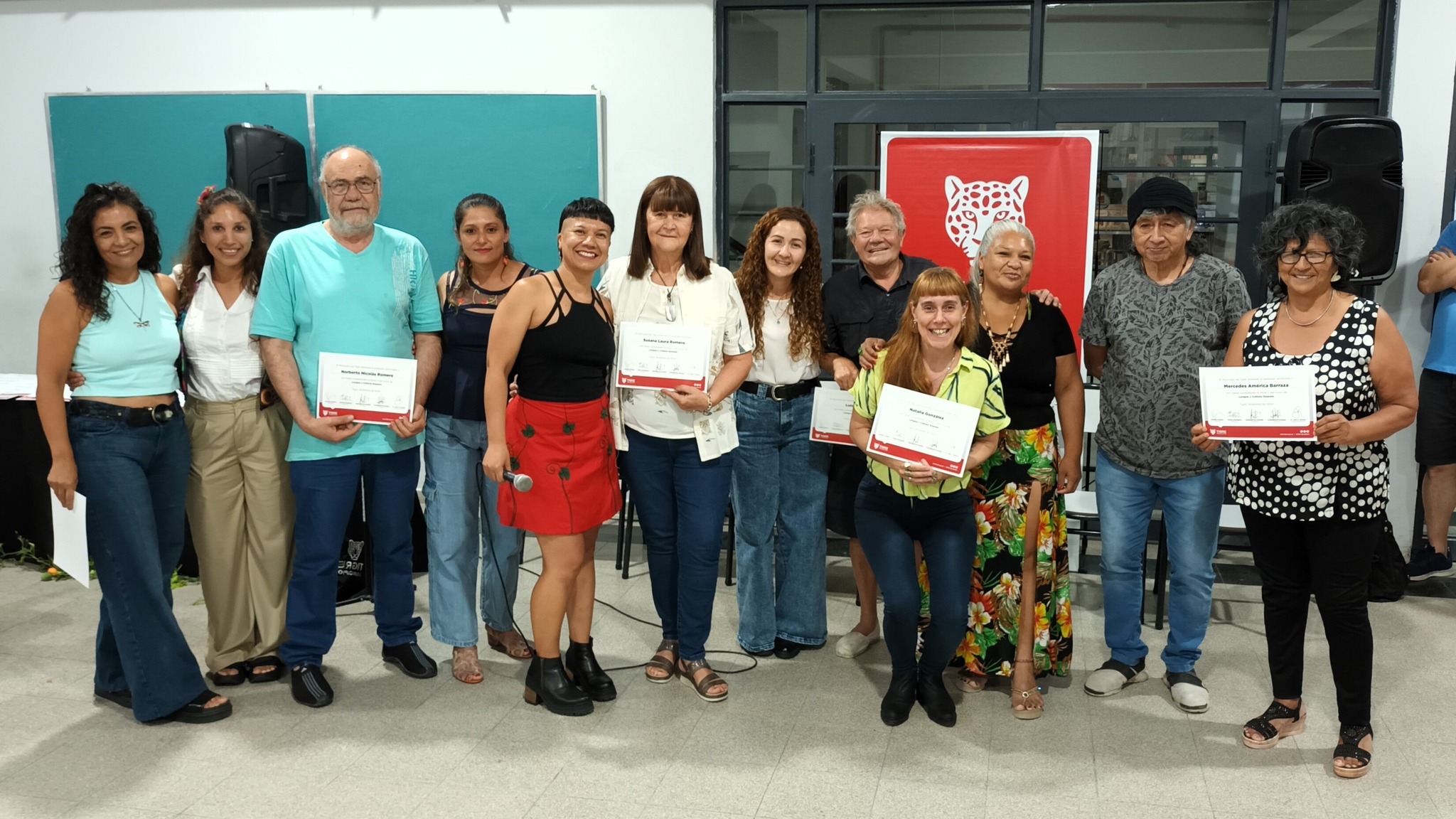 Luego de tanto esfuerzo, el martes 10 de diciembre, Día Internacional de los Derechos Humanos, unas 80 personas de los niveles 1 y 2 de Quechua se unieron en una emotiva jornada en el Aula principal del Centro Universitario Tigre, con el intendente Julio Zamora, las yachachiqkuna (profesoras) Paola del Federico y Josefina Navarro y las autoridades comunitarias Cintia López y Santiago Chara de la Unión de Pueblos Originarios.