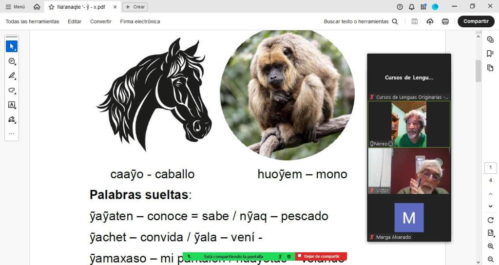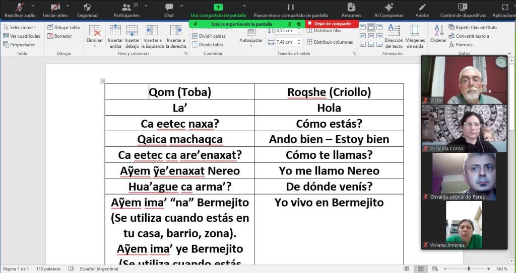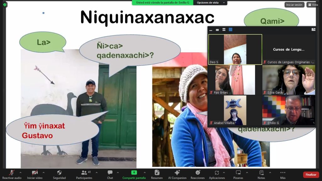 Las clases de qom y moqoit tuvieron la característica de ser 100% virtuales desde Chaco con el paxaguenataxanaxaic (profesor) Mario «Nereo» Charole los jueves y la napaxguinataxanaxa (profesora) Deolinda Salteño los sábados; él desde Villa Río Bermejito y ella desde la zona cercana a Villa Angela en el sur de esa provincia.