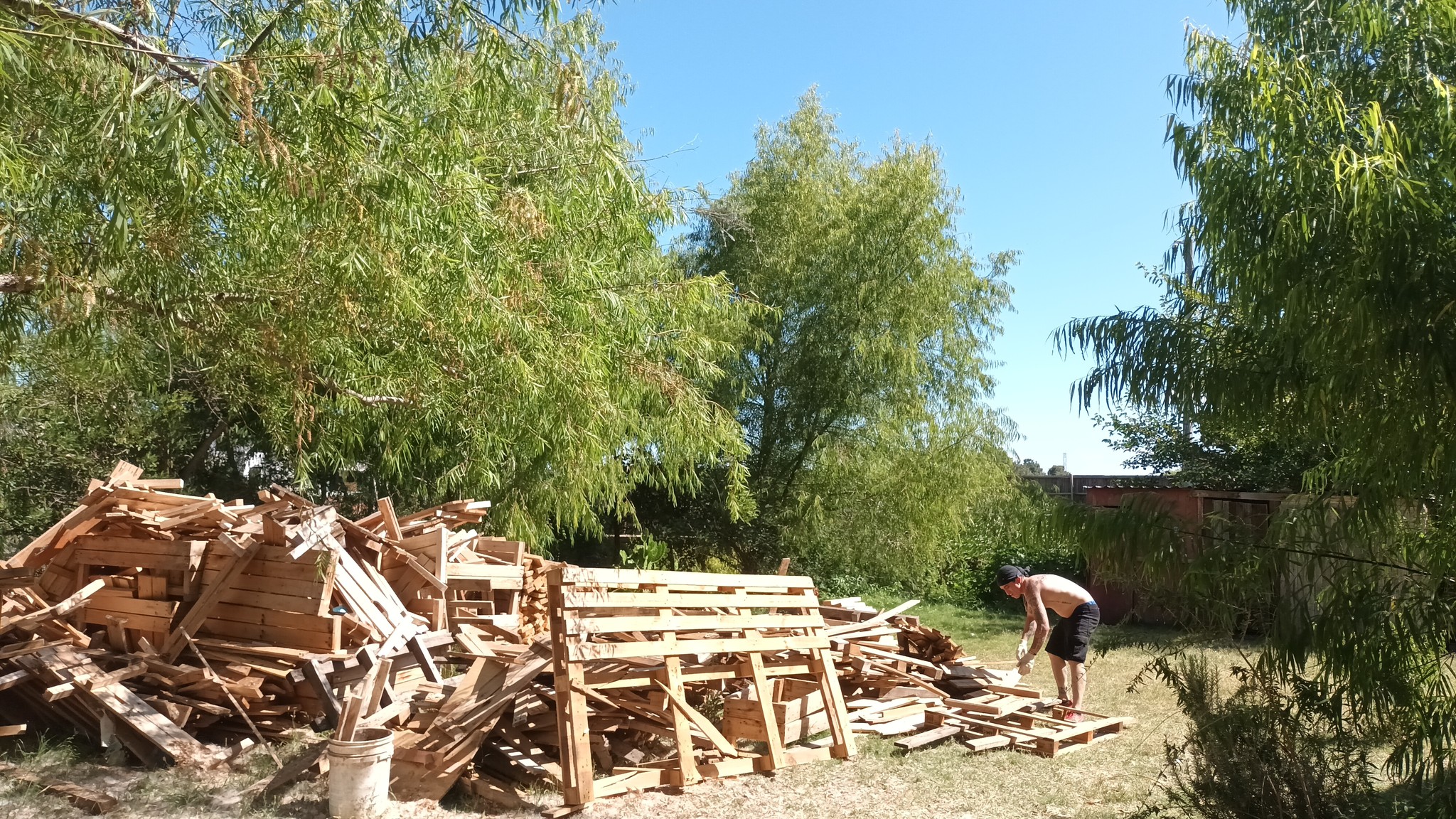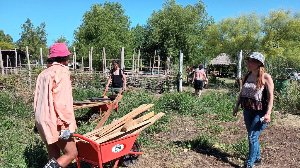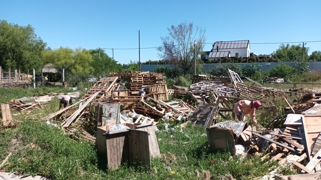 Los domingos 22 y 29 de diciembre acomodamos la leña en el sector del horno de barro y ordenamos los pallets de madera que nos donaron para las reparaciones y los proyectos productivos; limpiamos alrededor y adentro de la huerta, empezamos a armar una nueva conexión de riego y trasplantamos una parte de las plantas nativas aportadas por el Ministerio de Ambiente de la Provincia de Buenos Aires.