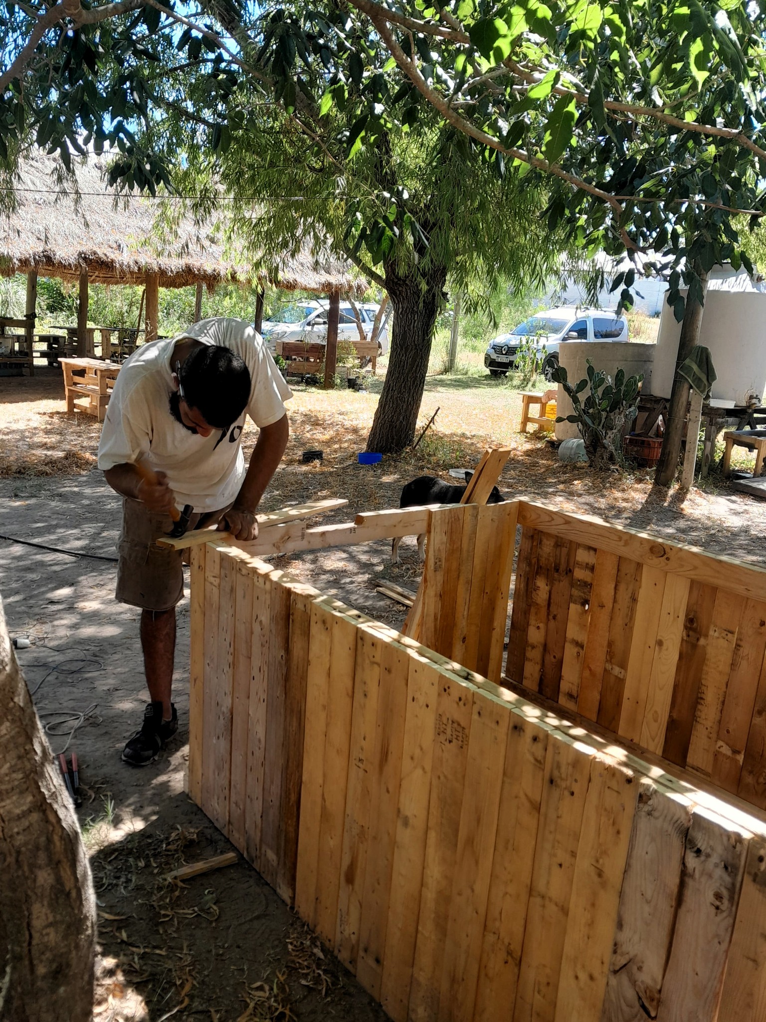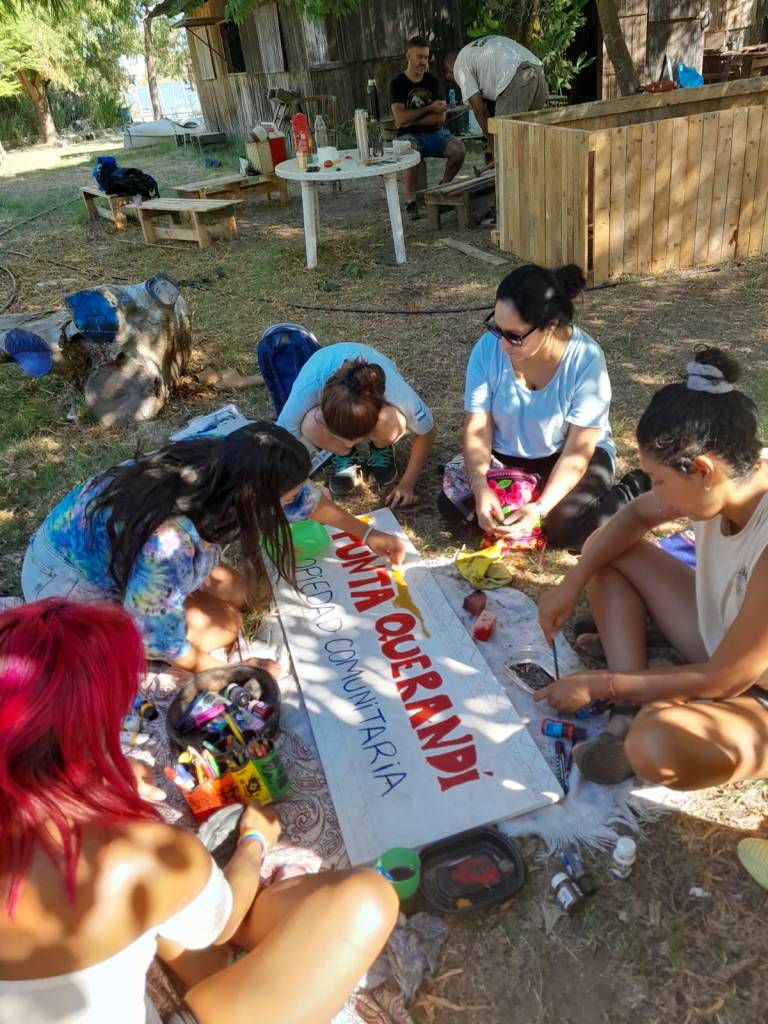 Entre otras tareas, continuamos con las tareas de limpieza y orden que la semana pasada estuvieron centradas en el Salón Comunitario y en esta jornada nos ocupamos del Taller. Además, seguimos la renovación del mobiliario de la comunidad y pintamos un cartel para colocar en el acceso del territorio de Punta Querandí.