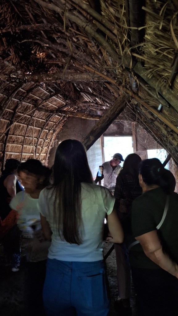 Después de un intercambio bajo el quincho de paja brava, recorrieron el Museo Autónomo de Gestión Indígena, el Monumento a la Yaguareté, el Taller de oficios, la Maloka (vivienda comunitaria ancestral), los dos sitios ceremoniales (la Apacheta y el Opy) y la huerta, entre otros espacios del territorio situado en el límite de Tigre y Escobar, epicentro de los barrios privados responsables de la destrucción de enterratorios ancestrales y miles de hectáreas de humedales continentales.