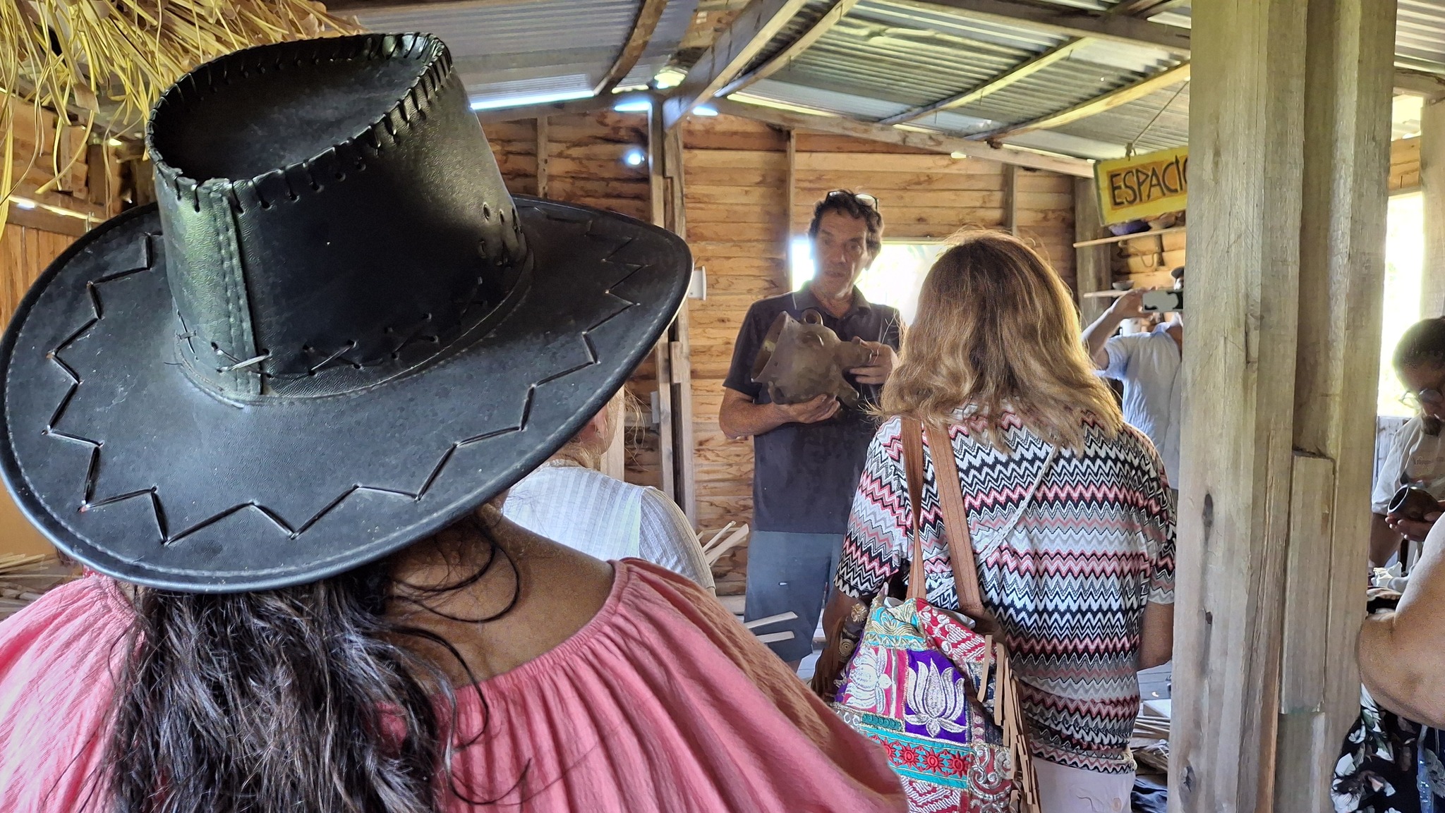 Después de un intercambio bajo el quincho de paja brava, recorrieron el Museo Autónomo de Gestión Indígena, el Monumento a la Yaguareté, el Taller de oficios, la Maloka (vivienda comunitaria ancestral), los dos sitios ceremoniales (la Apacheta y el Opy) y la huerta, entre otros espacios del territorio situado en el límite de Tigre y Escobar, epicentro de los barrios privados responsables de la destrucción de enterratorios ancestrales y miles de hectáreas de humedales continentales.