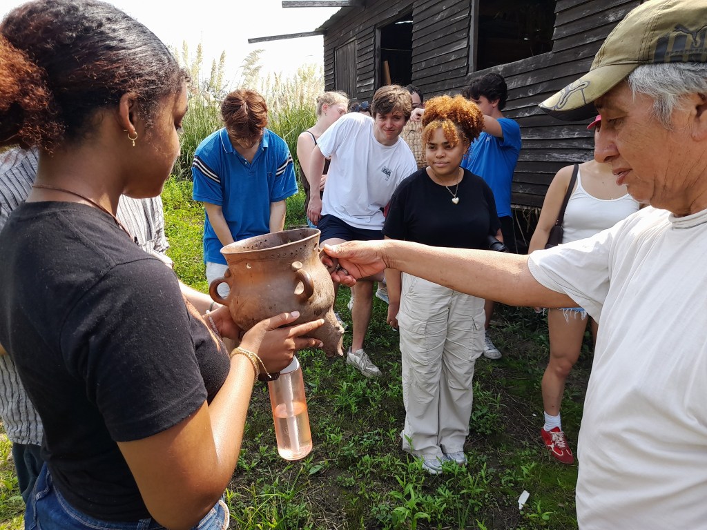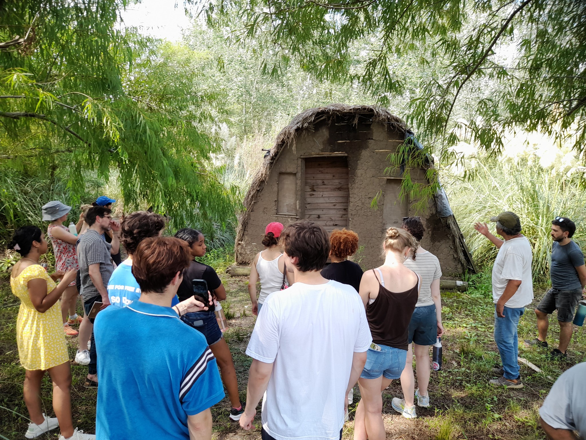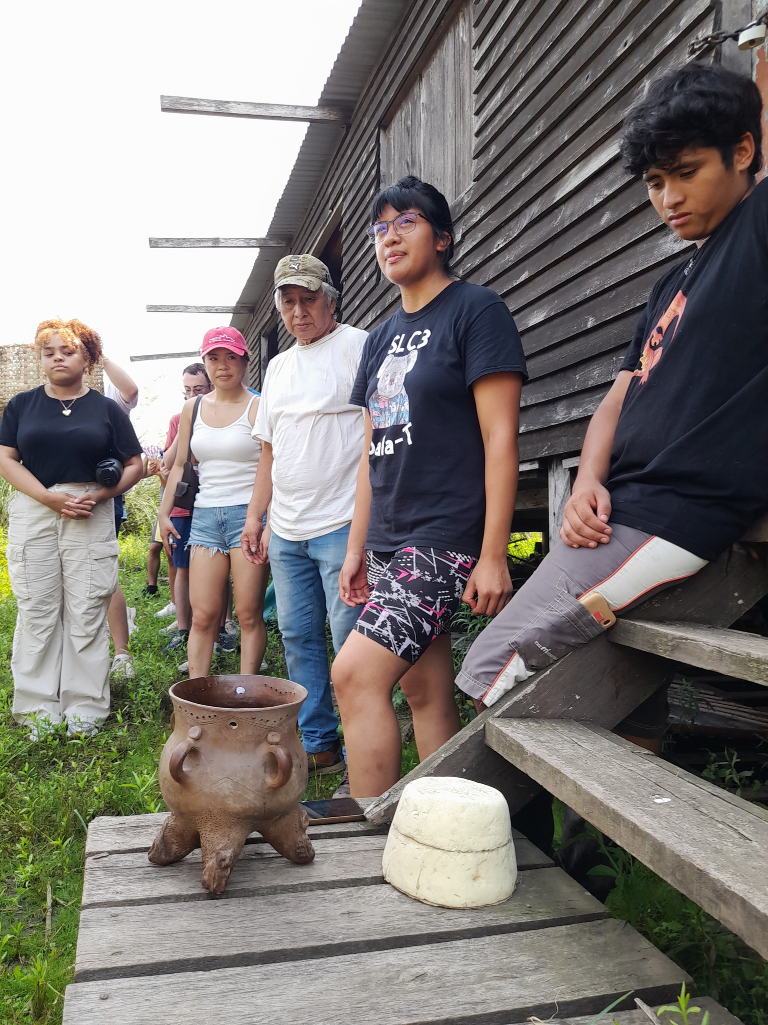 Después de un intercambio bajo el quincho de paja brava, las visitas recorrieron el Museo Autónomo de Gestión Indígena, el Monumento a la Yaguareté, el Taller de oficios, la Maloka (vivienda comunitaria ancestral), los dos sitios ceremoniales (la Apacheta y el Opy) y la huerta, entre otros espacios del territorio situado en el límite de Tigre y Escobar, epicentro de los barrios privados responsables de la destrucción de enterratorios ancestrales y miles de hectáreas de humedales continentales.