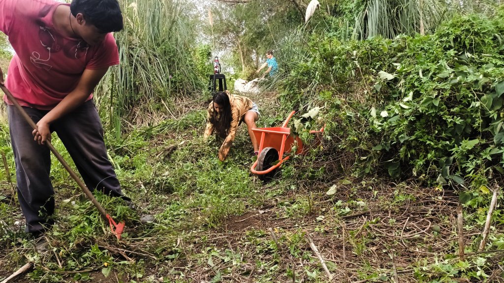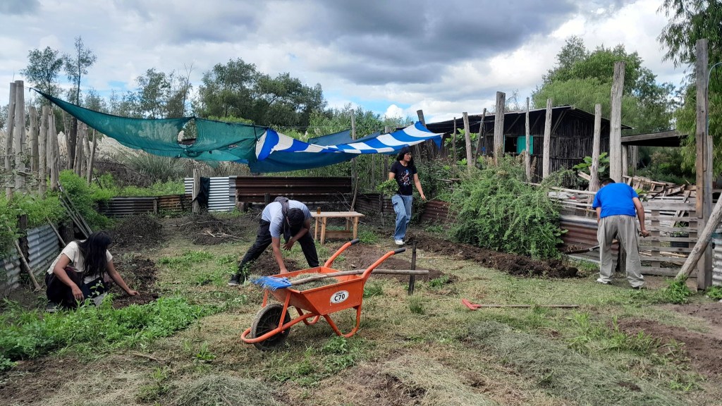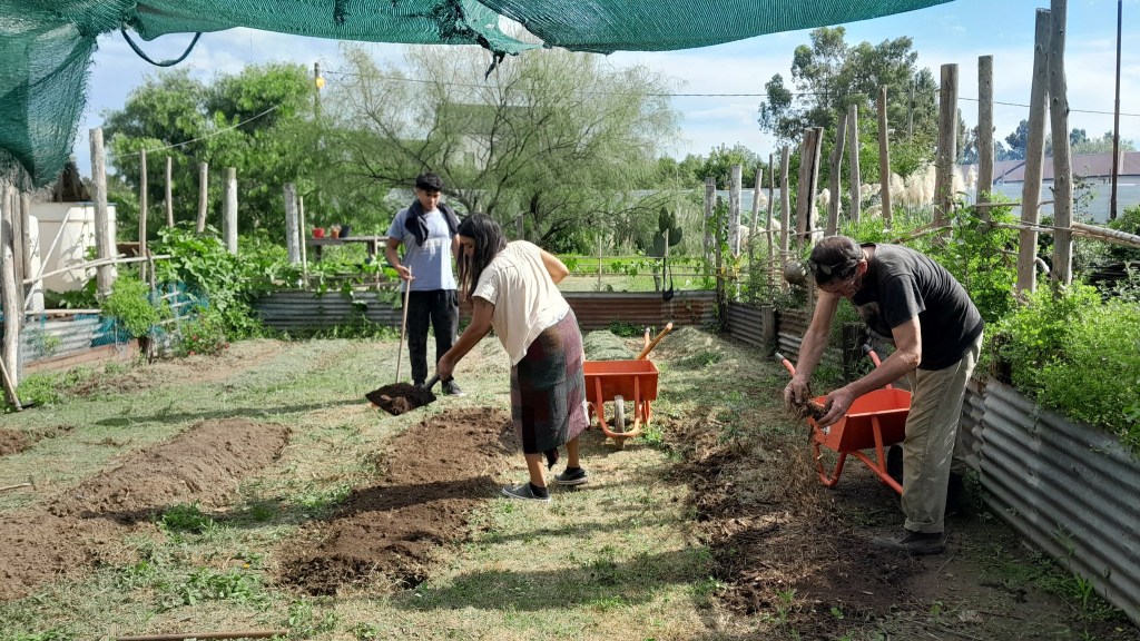 El domingo 16 de marzo priorizamos la huerta comunitaria para dejarla lista para la siembra de otoño – invierno. En el borde externo, se cortó el pasto y se limpió. Adentro, se sacaron los restos de la anterior siembra y los yuyos, se abonaron los bancales y se puso una cubierta vegetal para protección.
