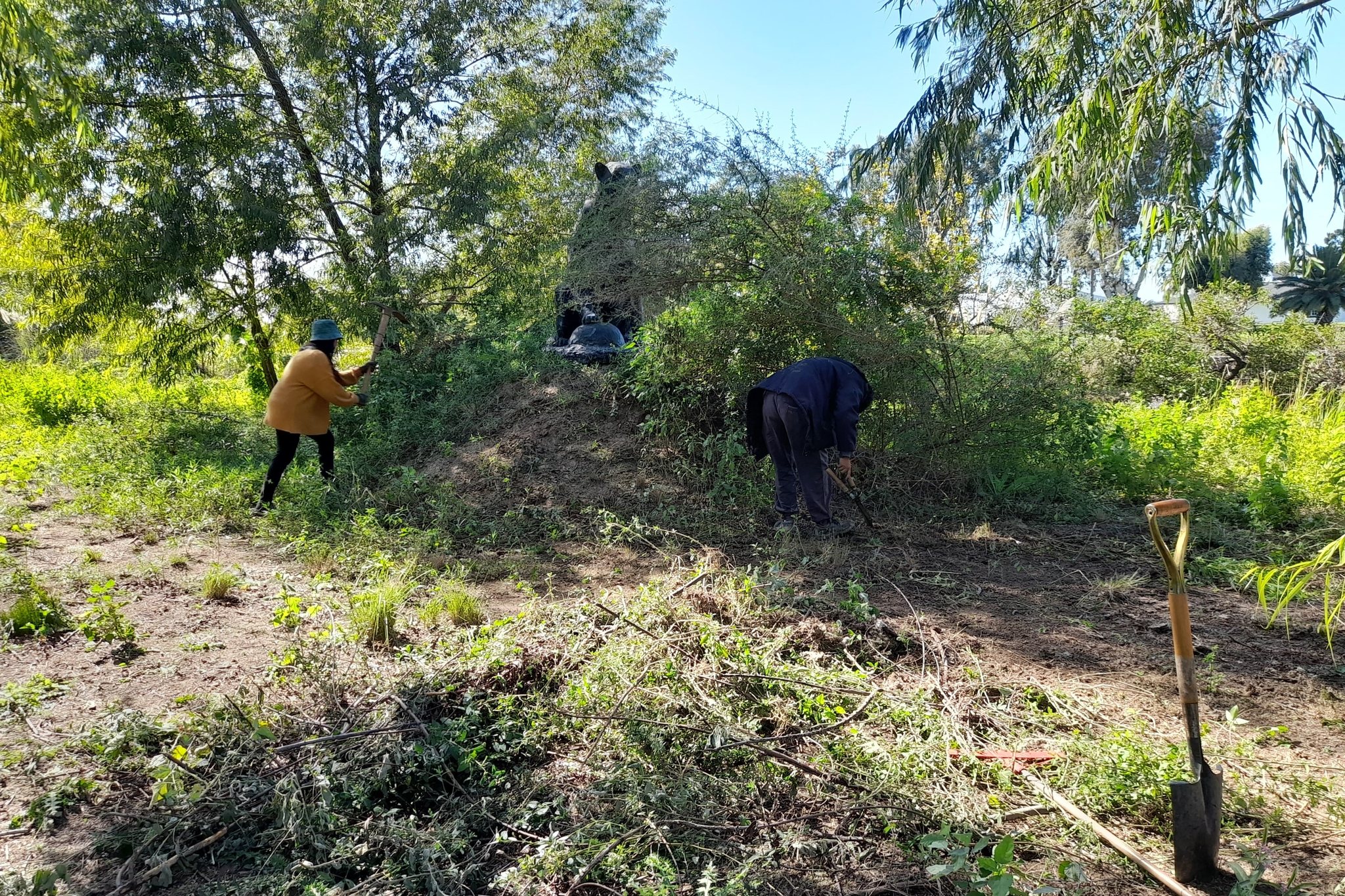 Para cumplir con este objetivo, primero recolectamos tierra abonada del monte de Punta Querandí, ya que el sector del acceso tiene un relleno de baja calidad y había que potenciarlo con nutrientes.