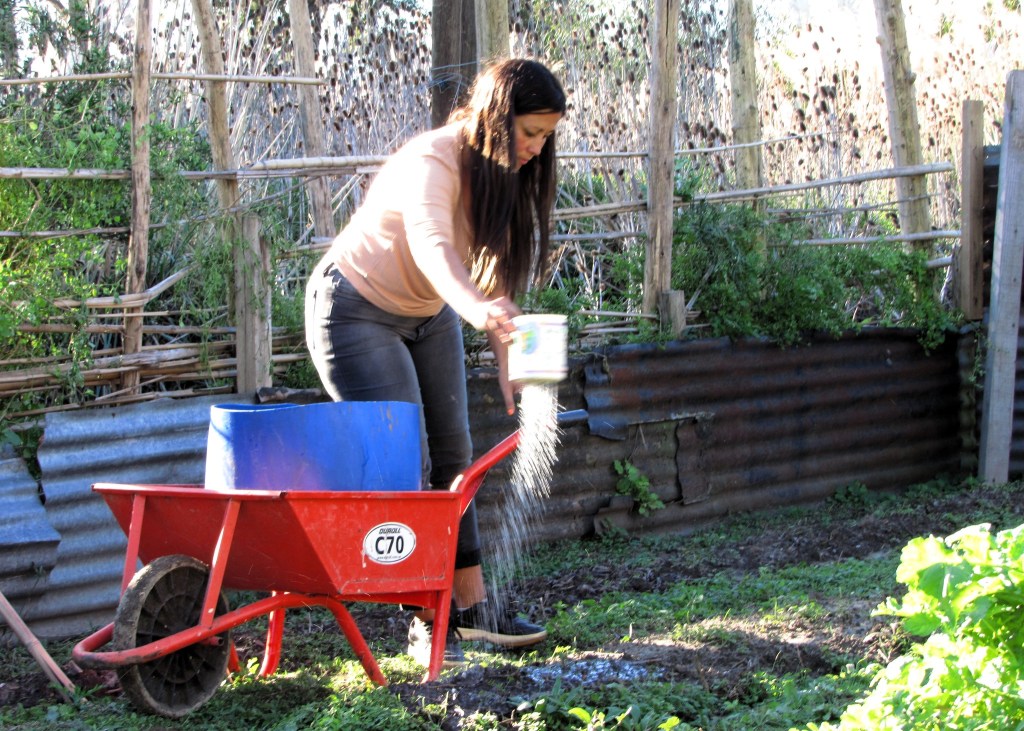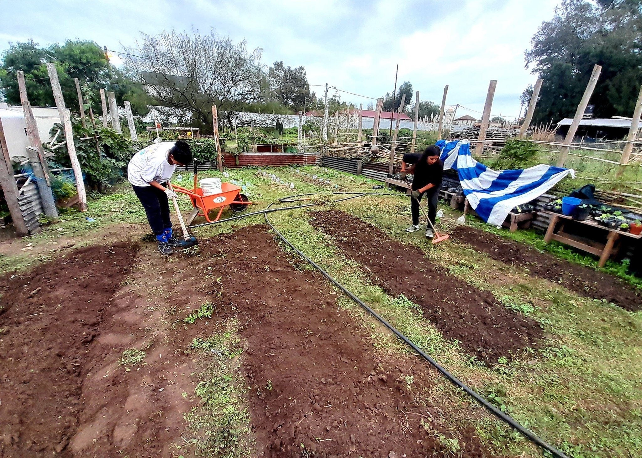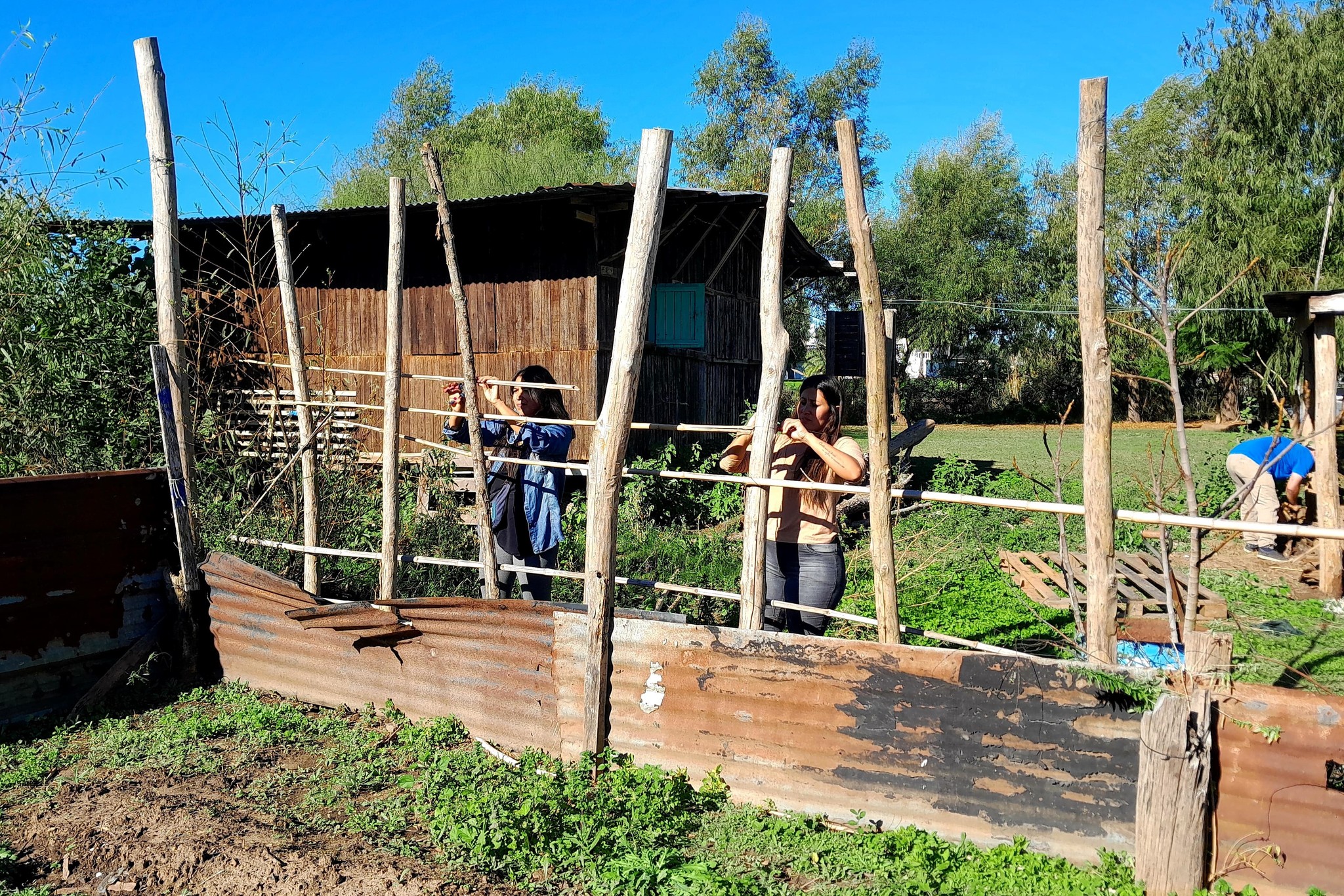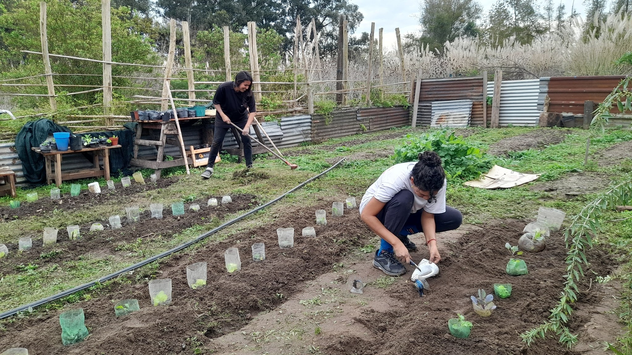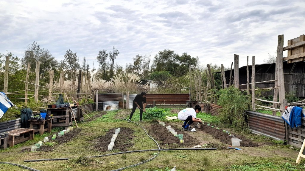 La prioridad estuvo en la huerta, con tareas muy diversas: desde reparar el cerco, preparar tierra compostada, controlar los hormigueros y armar protectores de plástico con botellas recicladas para los más de cien plantines de puerro, verdeo, lechugas, acelga, brocoli, repollos, kale, perejil y cilantro.