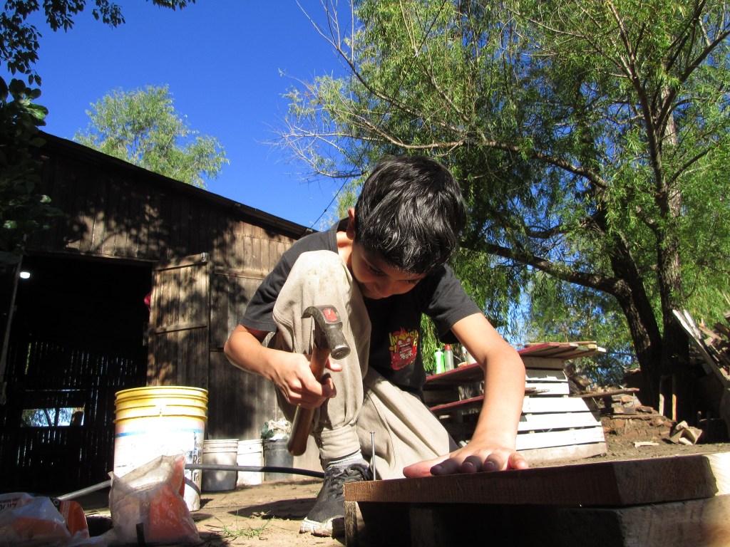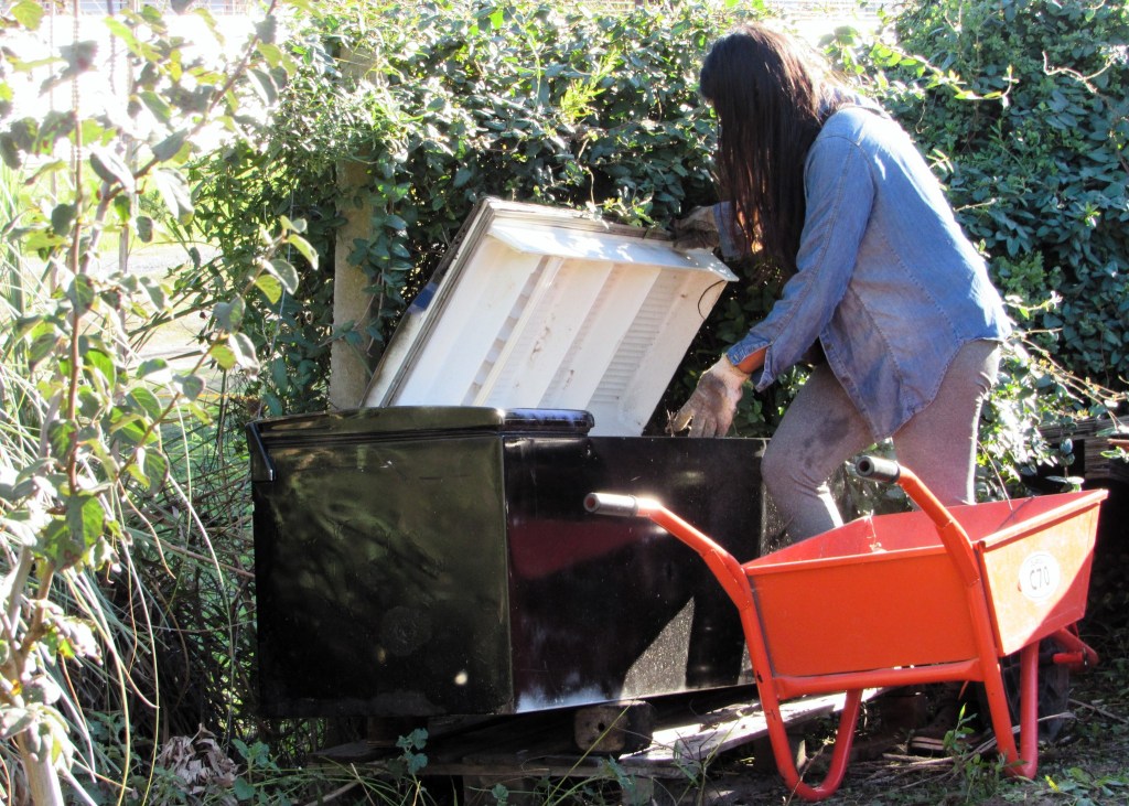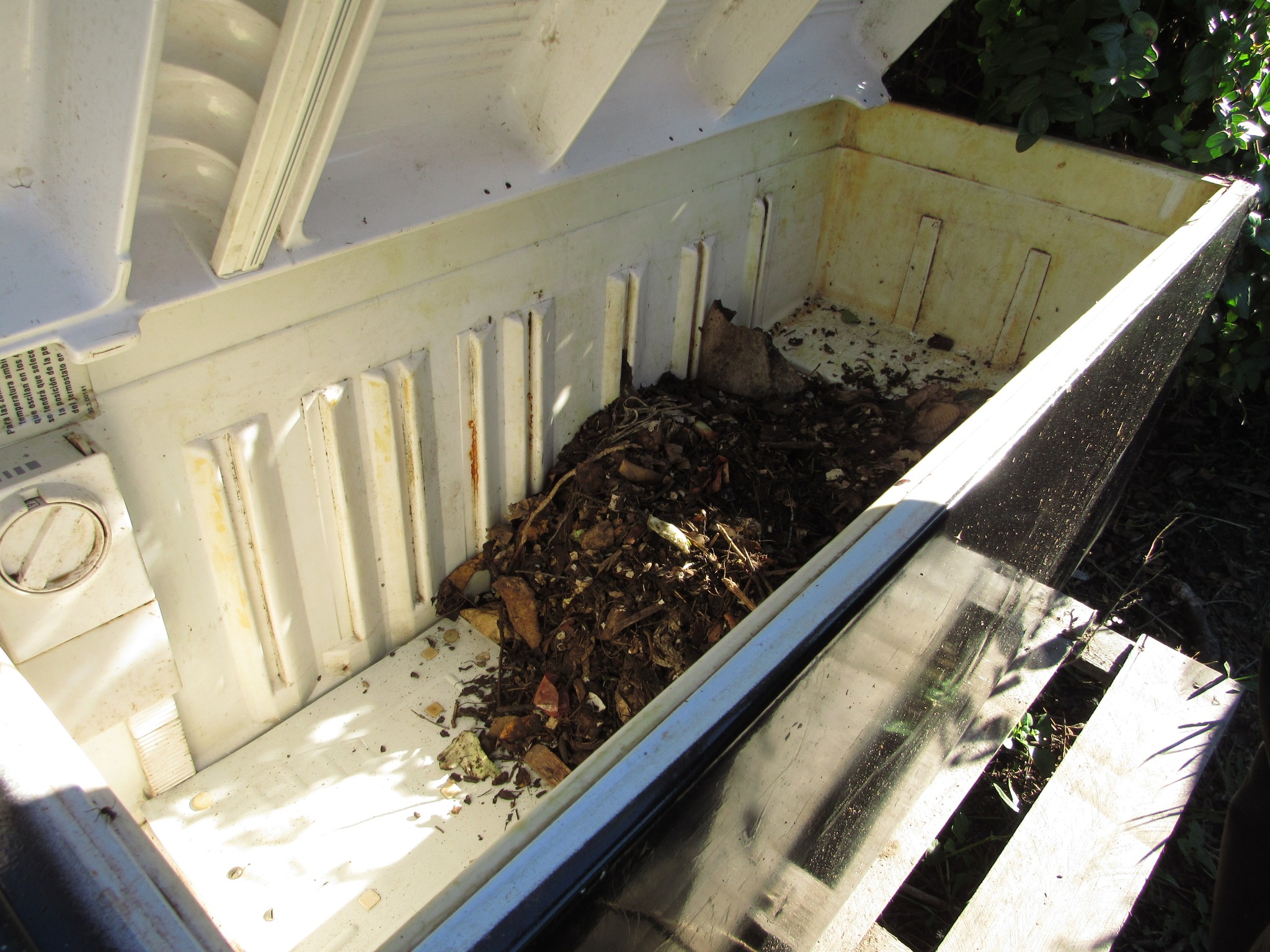 Otras tareas del domingo fueron ordenar las maderas alrededor del horno de barro, mejorar el cajón de herramientas y poner en funcionamiento una nueva abonera, reciclando un electrodoméstico que ya no tenía arreglo.