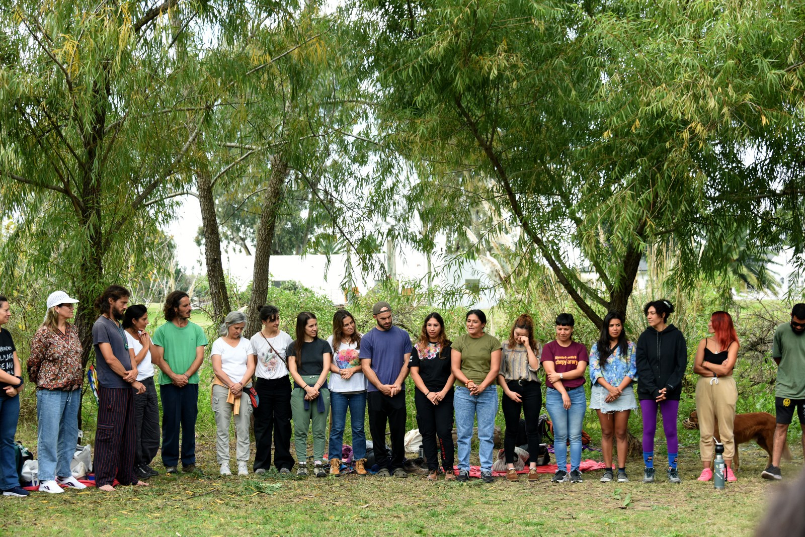 La jornada comenzó con una ronda de bienvenida donde se presentaron los integrantes de Punta Querandí, de la Unión de Pueblos Originarios de Tigre y Escobar, y una parte del equipo docente de los cursos.