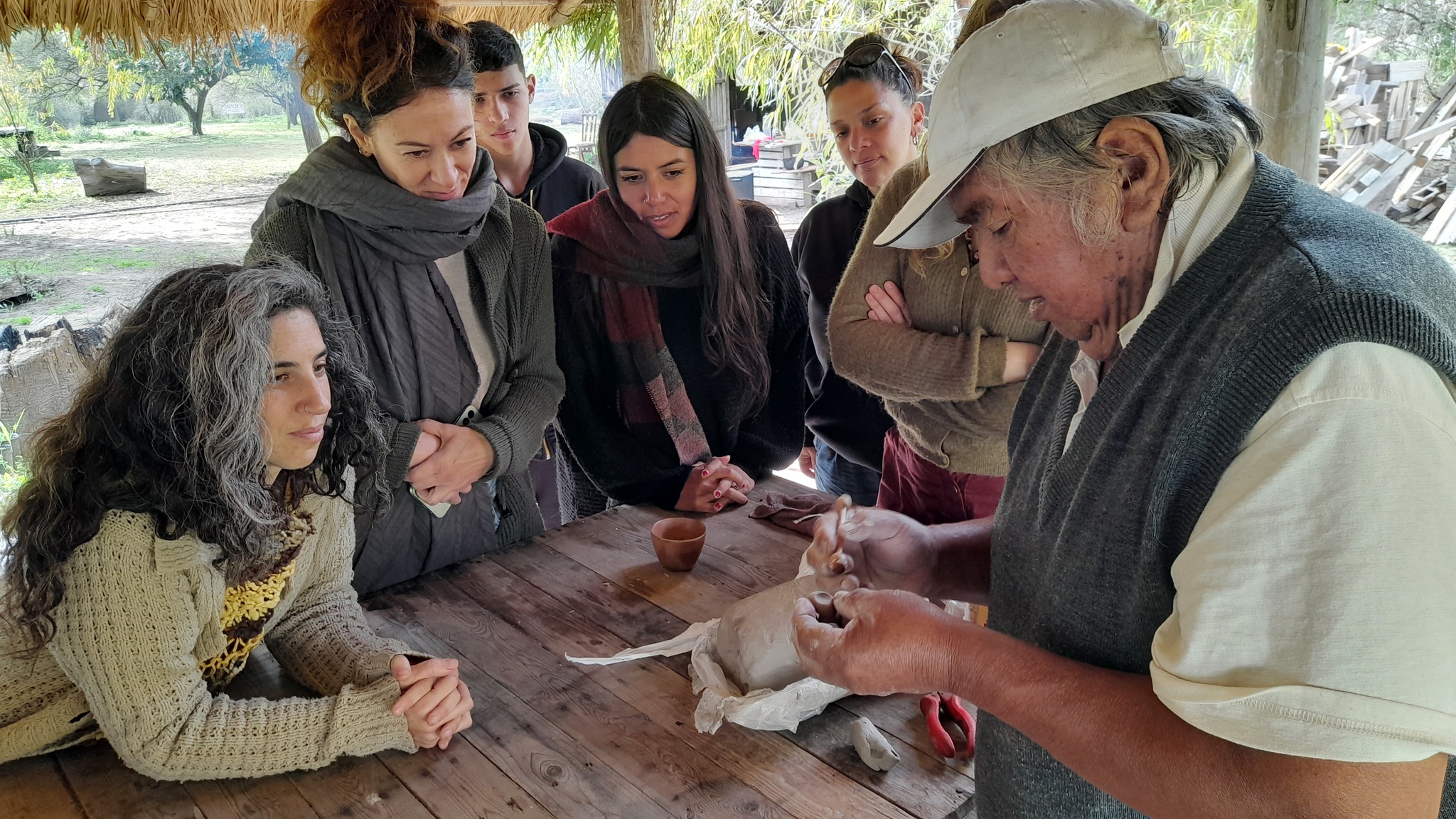 La jornada con Amancio Rojas fue parte de un espacio mensual de cerámica que desde 2022 en Punta Querandí coordinan Florencia Borowski (Taller Amaru) y Julieta Medina (Taller Anatiri), especializadas en las técnicas ancestrales de la región bonaerense.